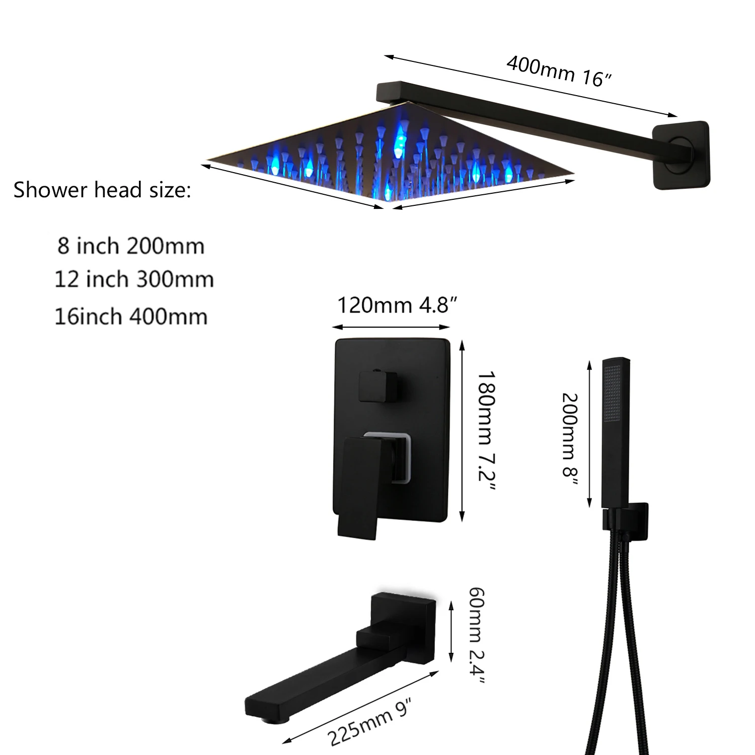 Смеситель для душа, 81216 дюймов, матовый черный, со светодиодной п...