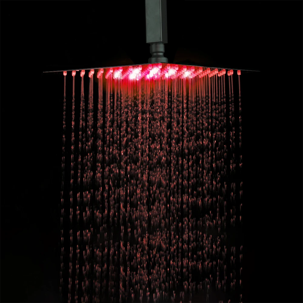 Матовый черный светодиодное потолочное крепление смеситель для душа KEMAIDI, дождевая ванна, квадратная насадка для душа, поворотный кран, набор