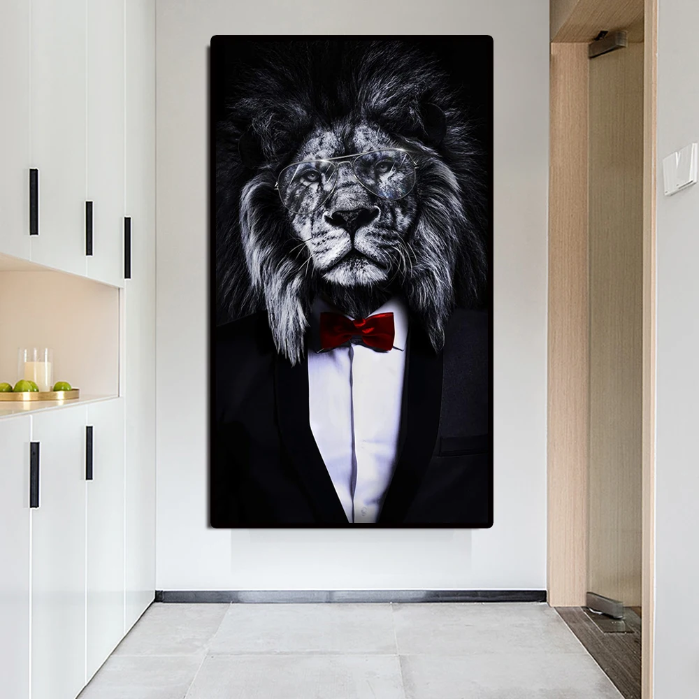 Черный дикий лев в костюме курение сигары Холст Картина плакаты и принты Настенная картина для гостиной домашний декор Куадрос