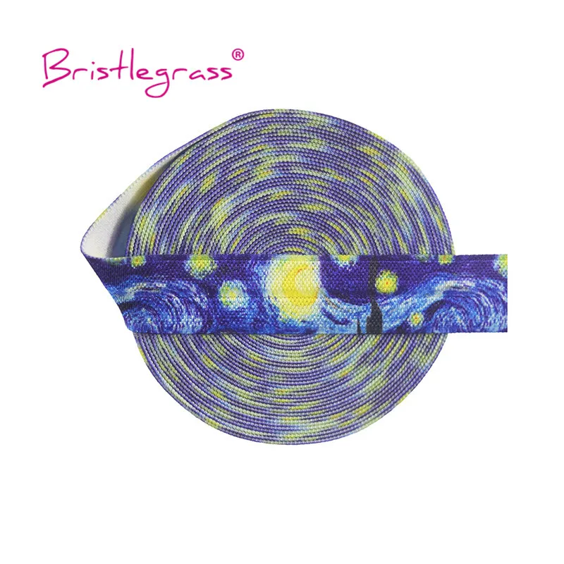 BRISTLEGRASS Combo 6 ярдов 5/8 "15 мм Ван Гог солнце цветочный принт раскладной эластичный враг спандекс атласная лента платье-пачка Сделай Сам шитье отделка