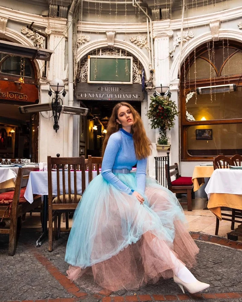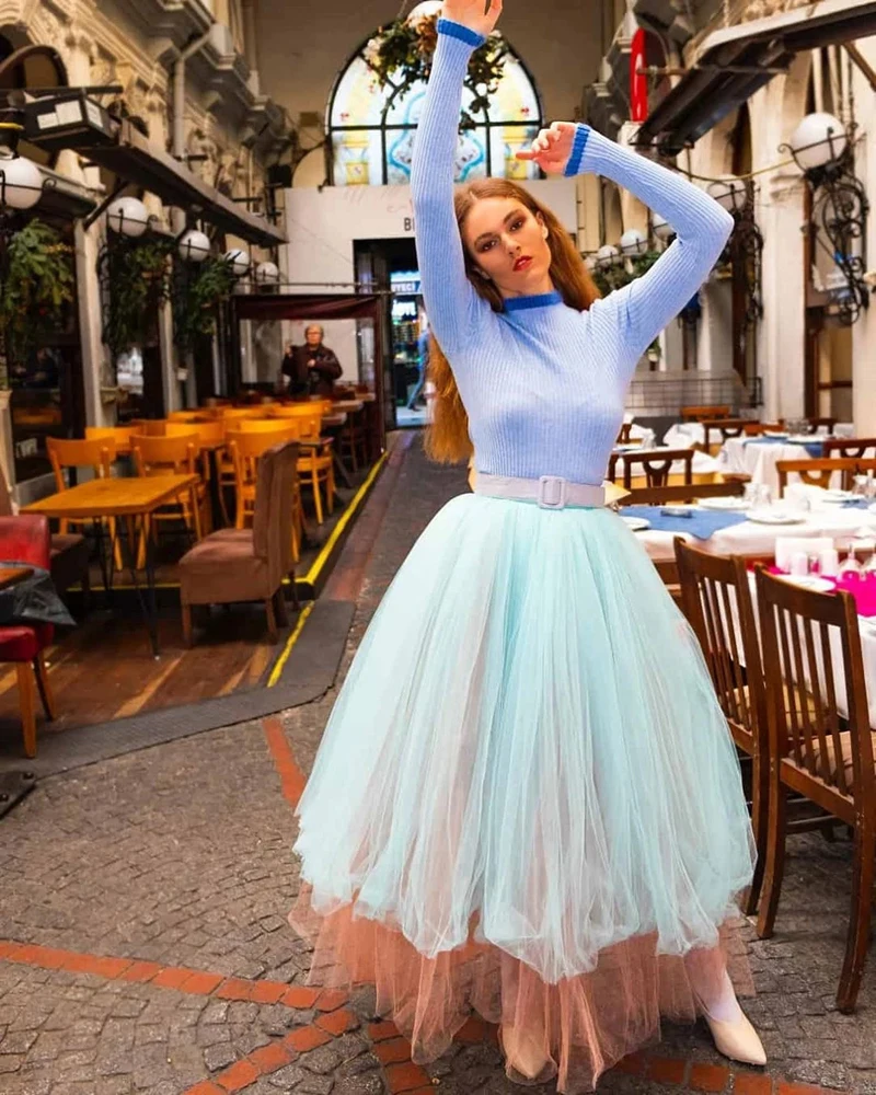 Вообще говоря, у нас есть только фотографии моделей. Наши юбки выполнены по индивидуальному заказу, это означает, что мы сделаем каждую юбку такой же, как на изображении модели, в соответствии с вашим размером.
