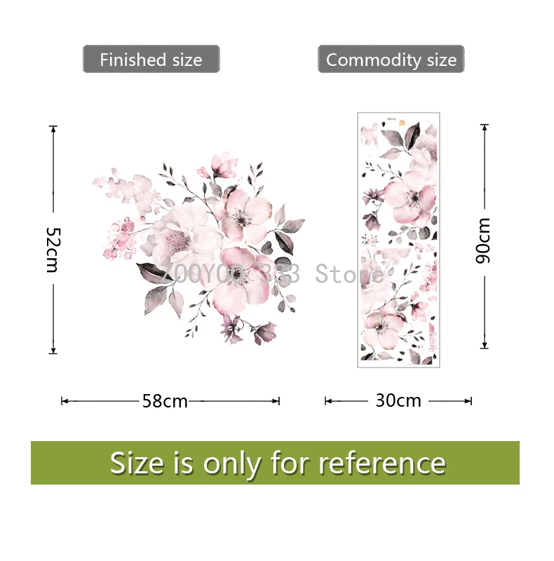 Новые розовые цветочные настенные наклейки, украшение для спальни, ...