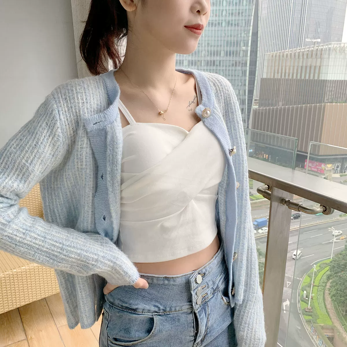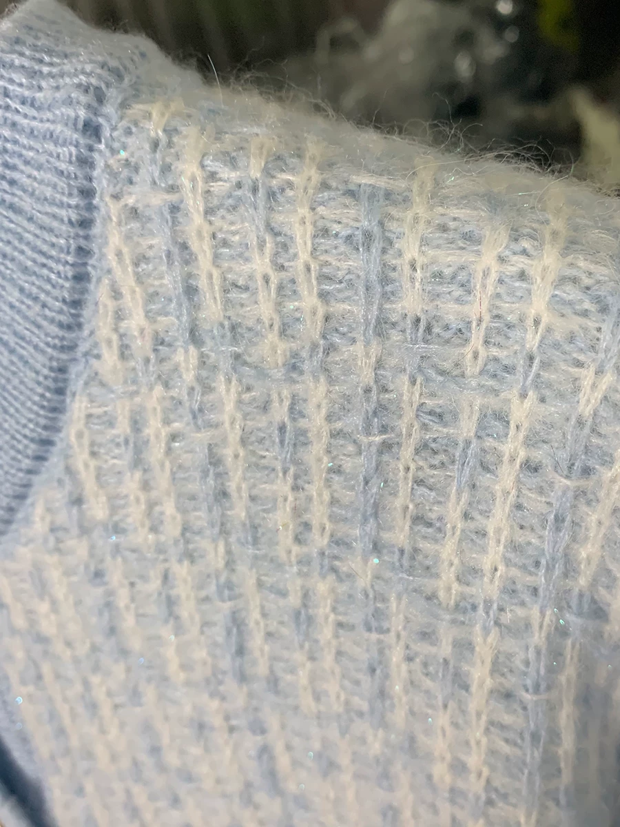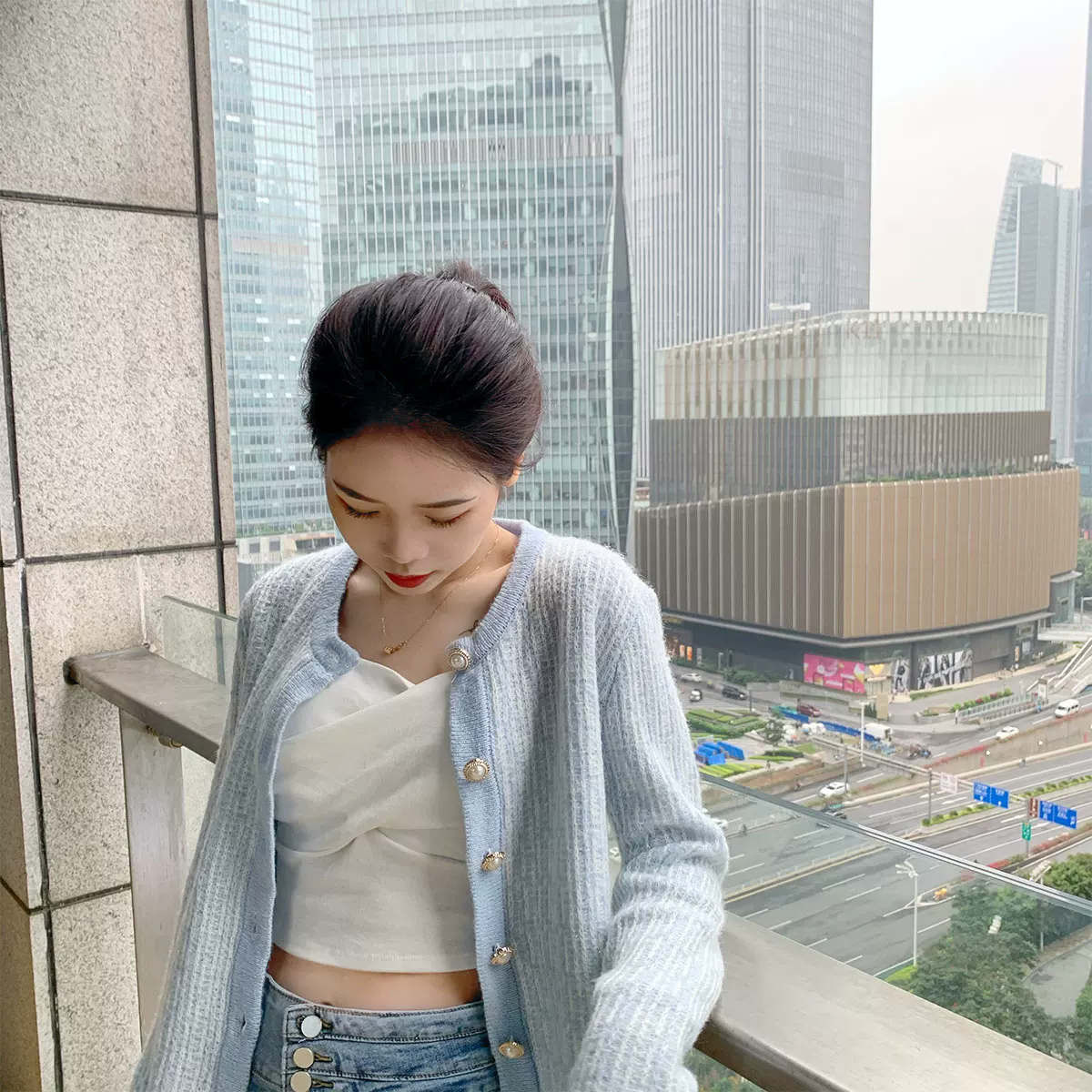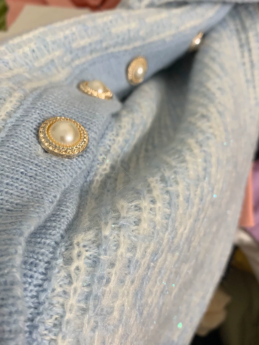 Кардиган вязаный женский, голубой, с круглым вырезом и длинными рукавами, в стиле пэчворк, осень 2020