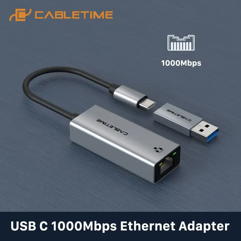 Сетевая карта CABLETIME с USB C на Ethernet LAN 1000 Мбитс, адаптер для iPad pro, ноутбука Macbook Air RJ45, C361