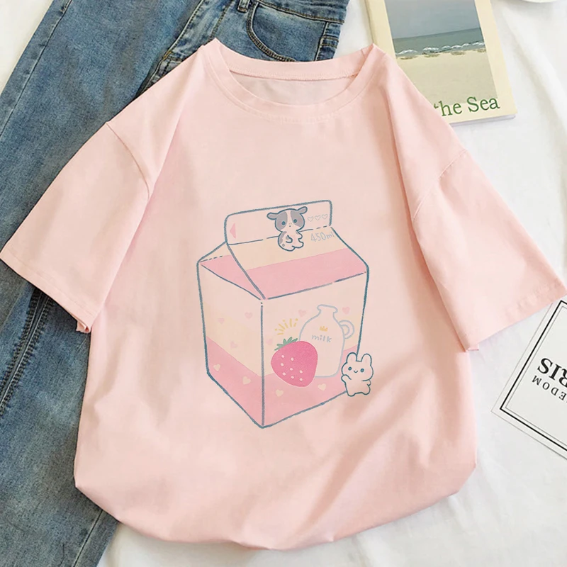 Футболка женская с графическим принтом клубники и сока, лето 2020