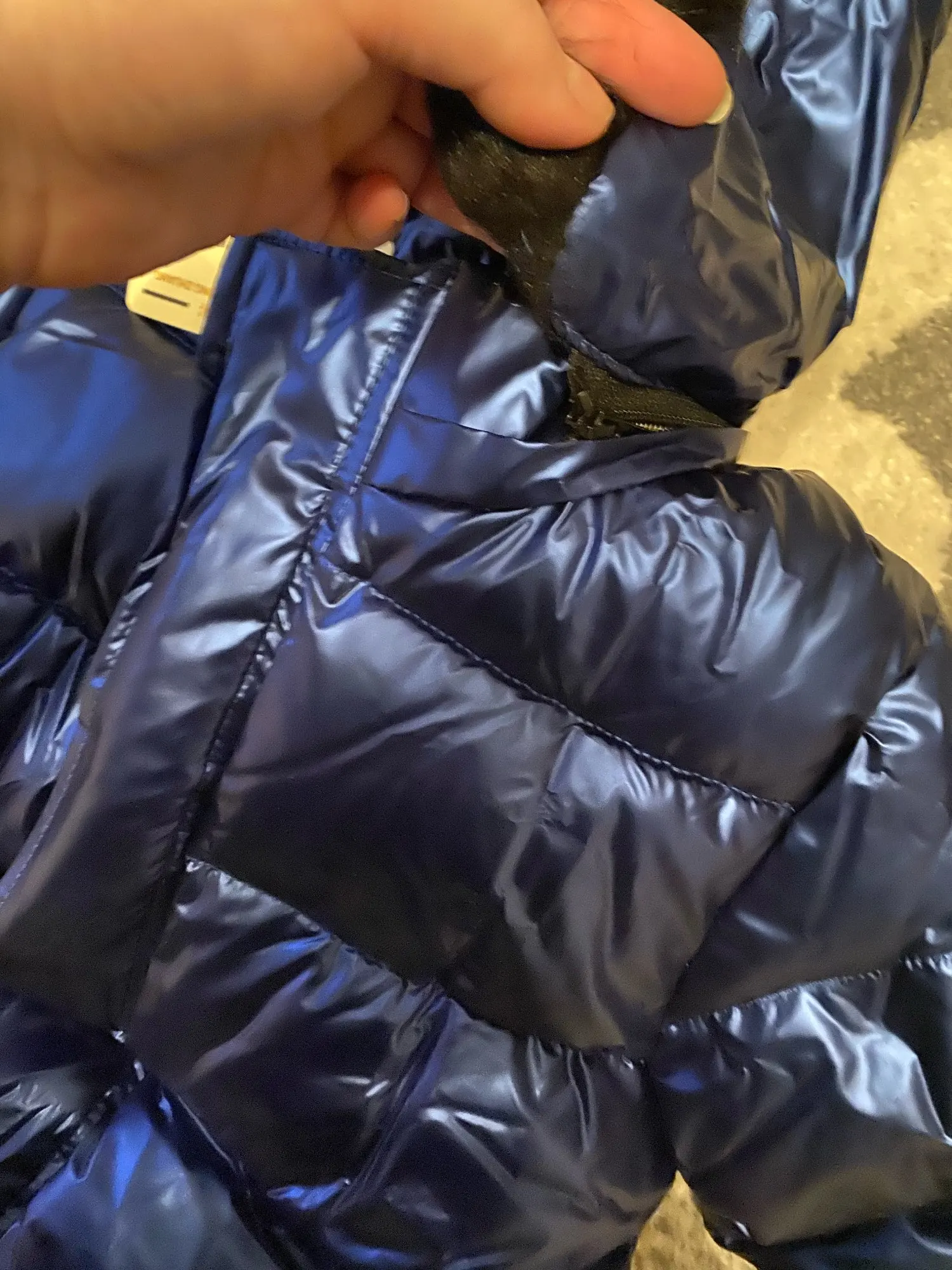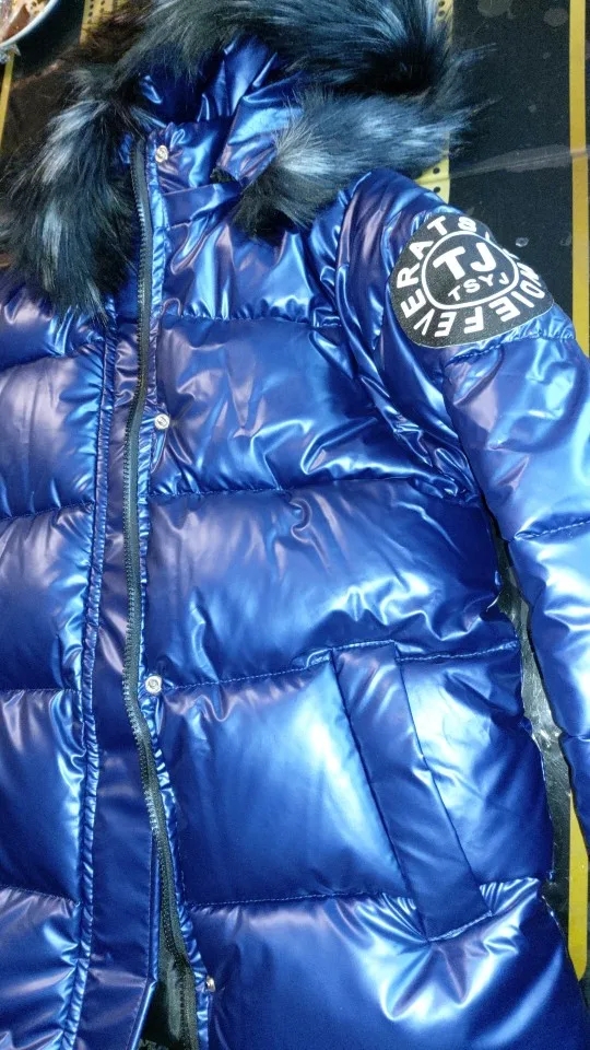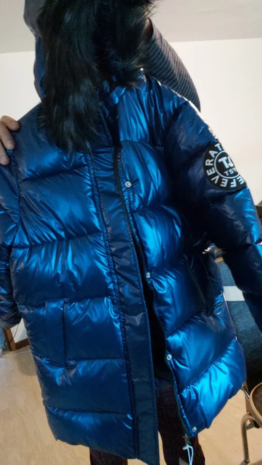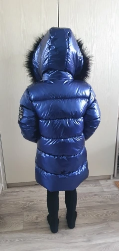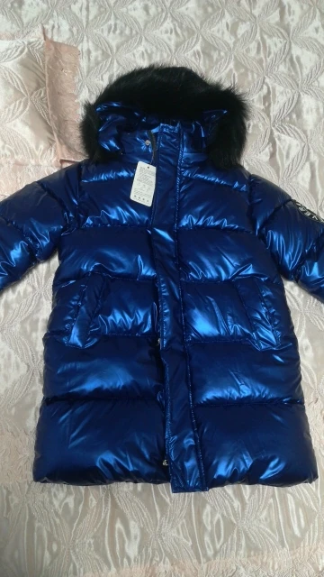 Красивое блестящее пальто, светло-голубое, чем на фото. Очень теплый. Быстрая доставка.