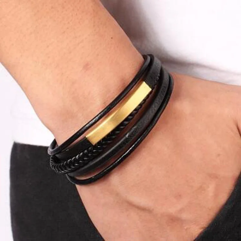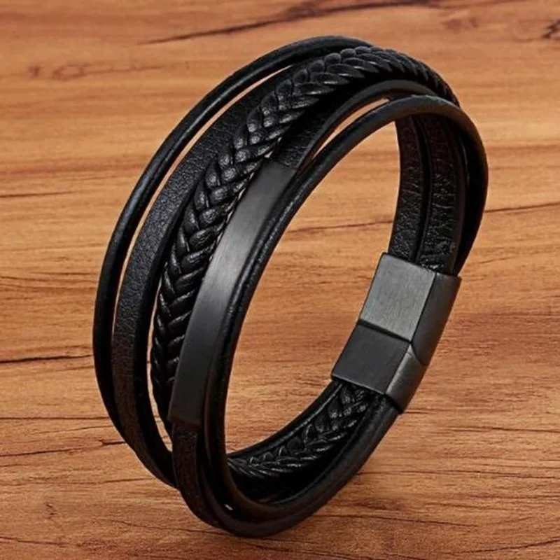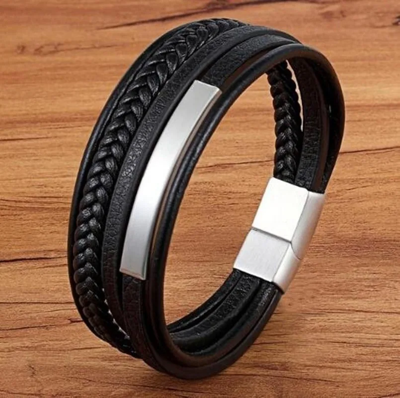 MenClassic очаровательный кожаный браслет ювелирные изделия многослойный магнит подарок ручной работы