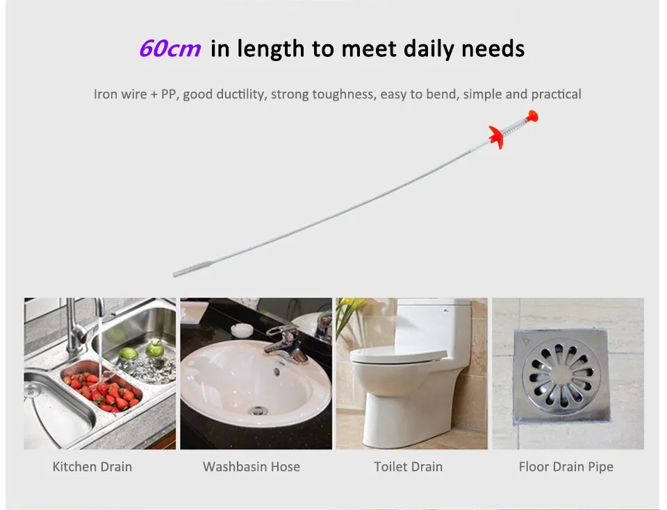 Пружинная инструменты для копания для труб 60 см, сливная змея, канализационные земснаряды, крючки для труб, средство для удаления засоров, бытовые инструменты для очистки кухонной раковины