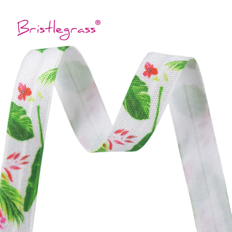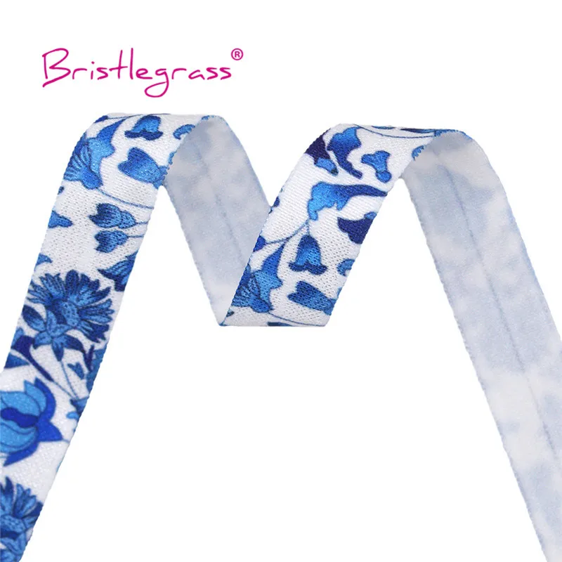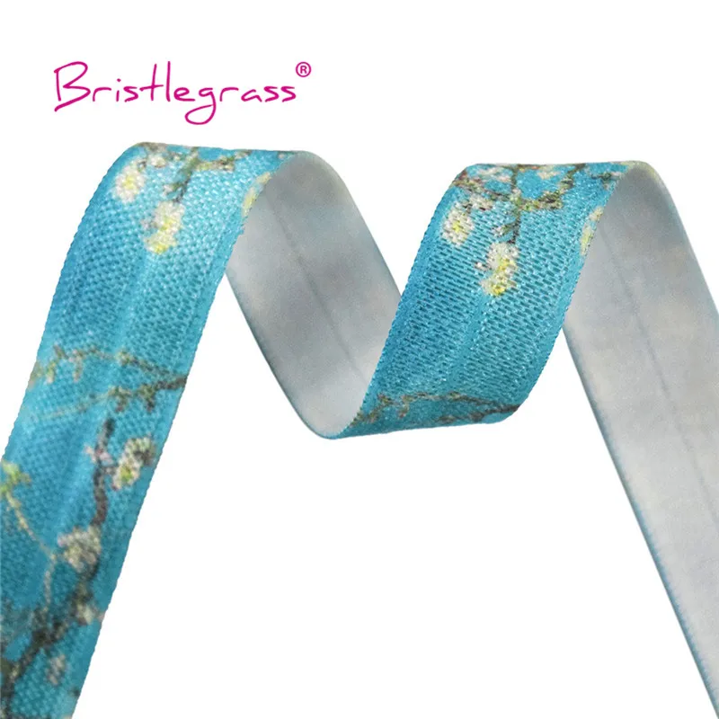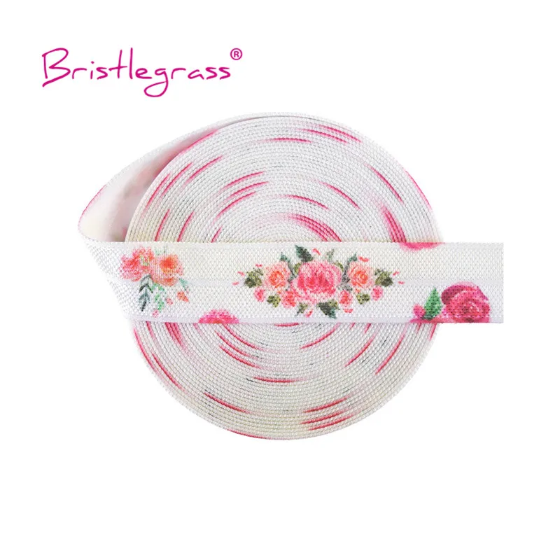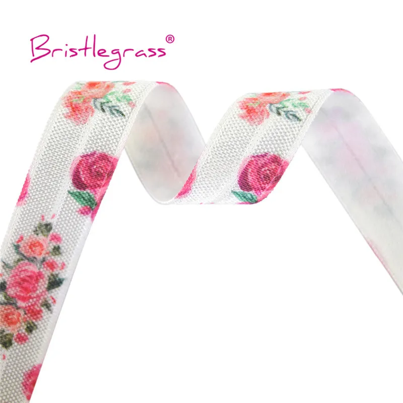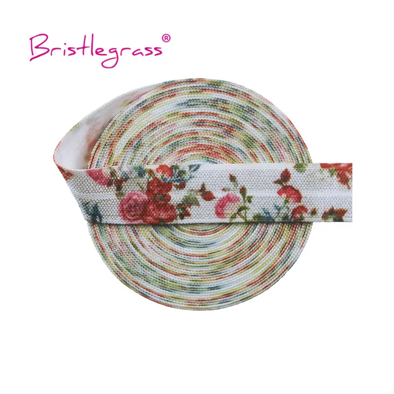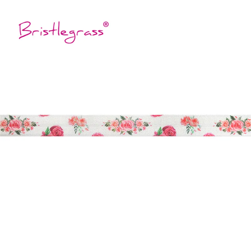 BRISTLEGRASS Combo 8 ярдов 5/8 "15 мм цветочный принт раскладной эластичный враг спандекс атласная лента для волос галстук платье с повязкой DIY швейная отделка