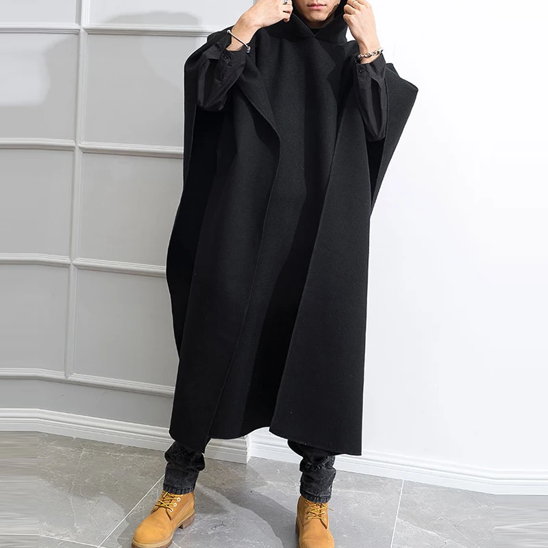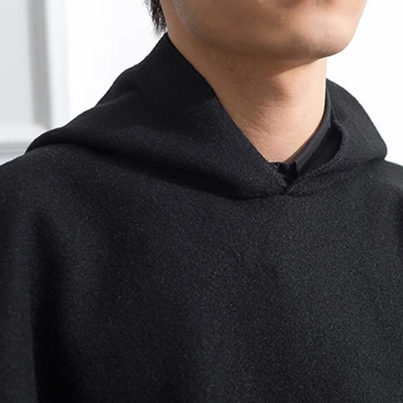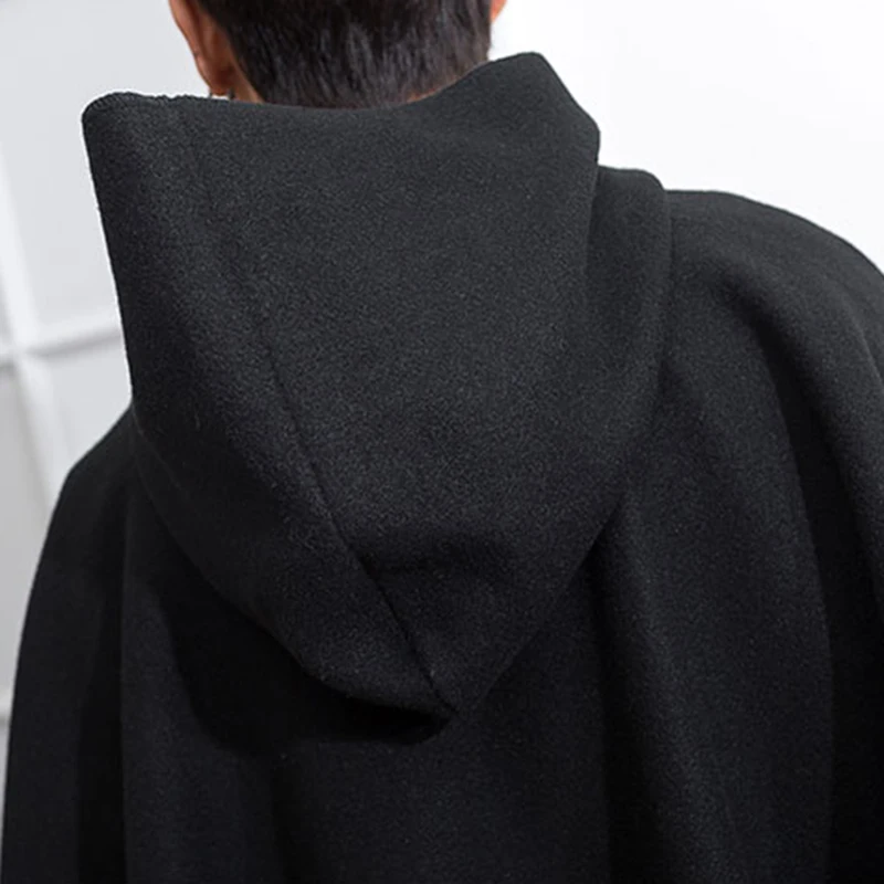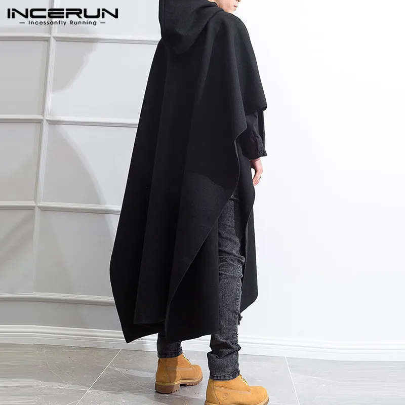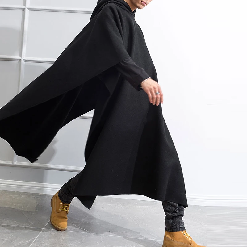 Тренч мужской с капюшоном, модная Асимметричная куртка свободного покроя в стиле ретро, верхняя одежда в стиле панк, черный плащ с длинным рукавом, 5XL, Осень-зима