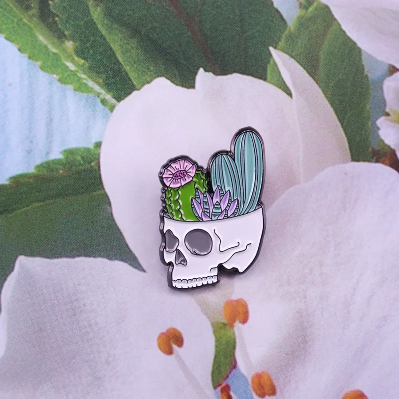 Значок в виде кактуса, черепа, цветов, горшка, брошь, суккуленты, искусство садоводства