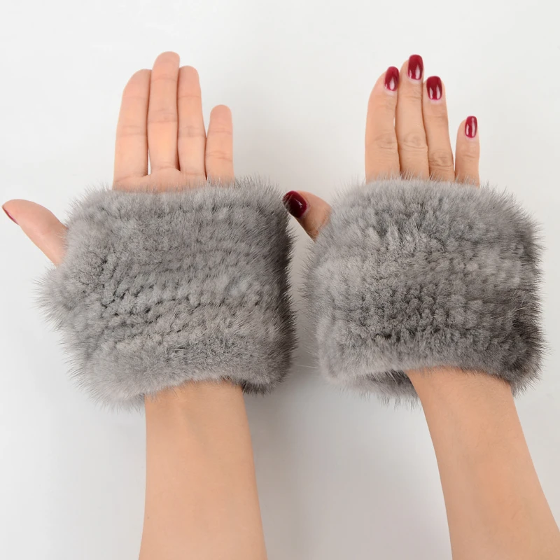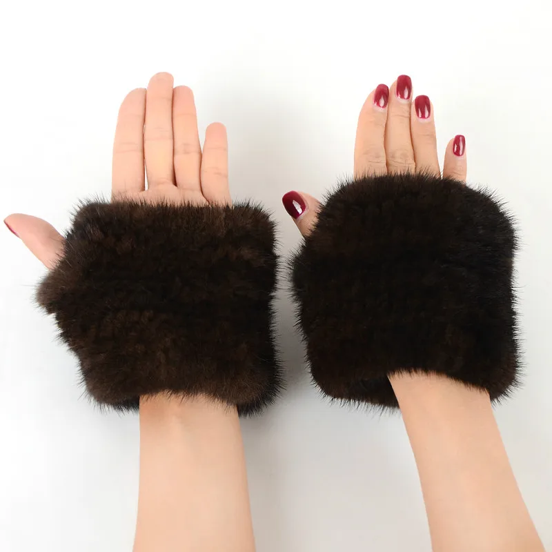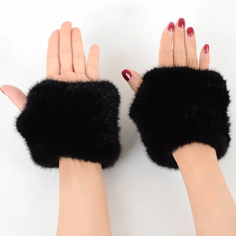 2020 Модные Эластичные Перчатки Без Пальцев Вязаные Женские Черные Из Натурального Меха Норка Новые Зимние Перчатки Без Пальцев