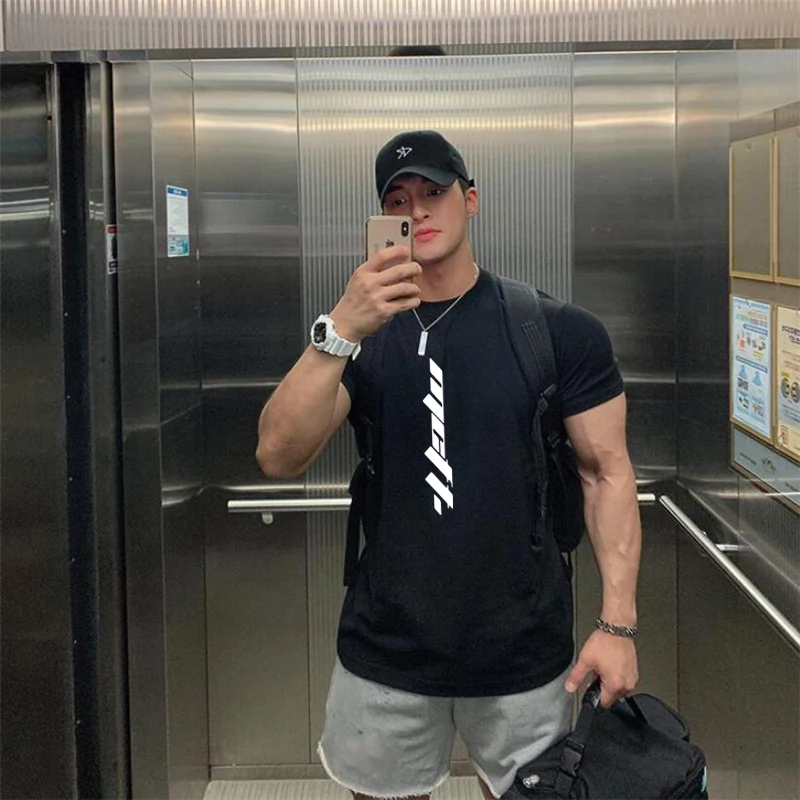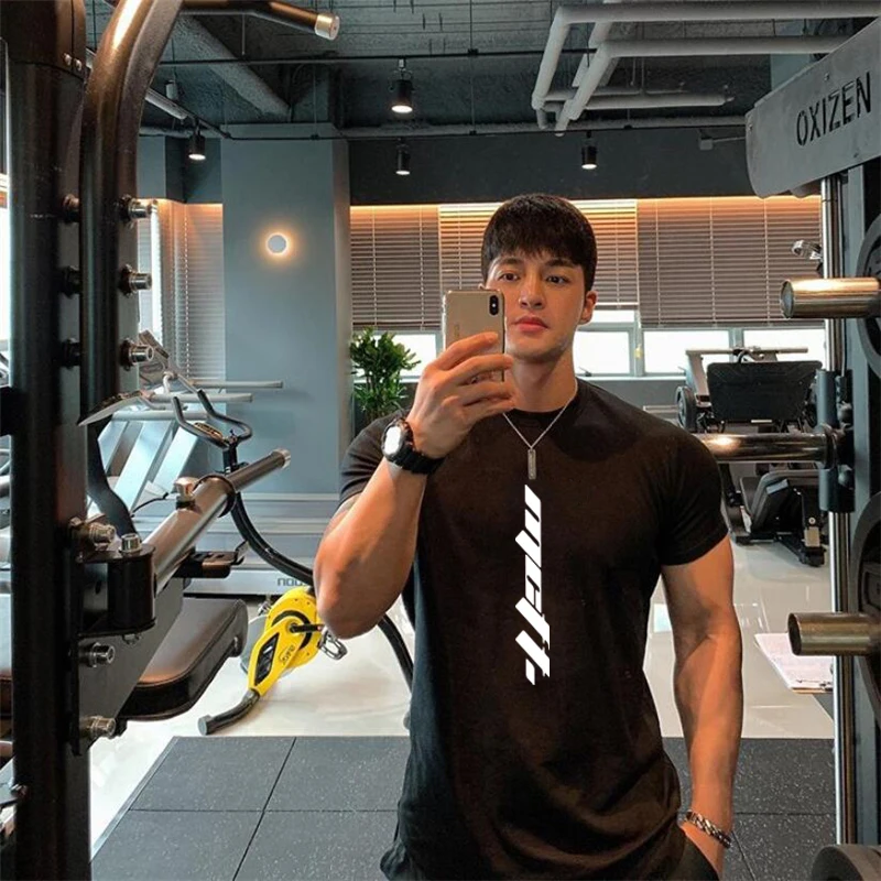 Летняя спортивная одежда, мужская одежда, футболки с круглым вырезом, модные мужские топы, хлопковая футболка для фитнеса, тренажерного зала, футболка с коротким рукавом для бодибилдинга