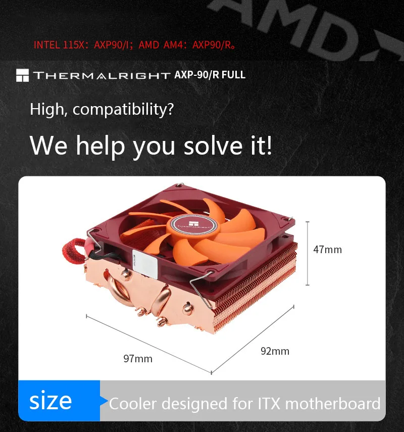 Охладитель ЦП Thermalright AXP90, тонкий кулер с 4 медными трубками, 47 мм, A4, MINI ITX, подходят для Intel115X AM4