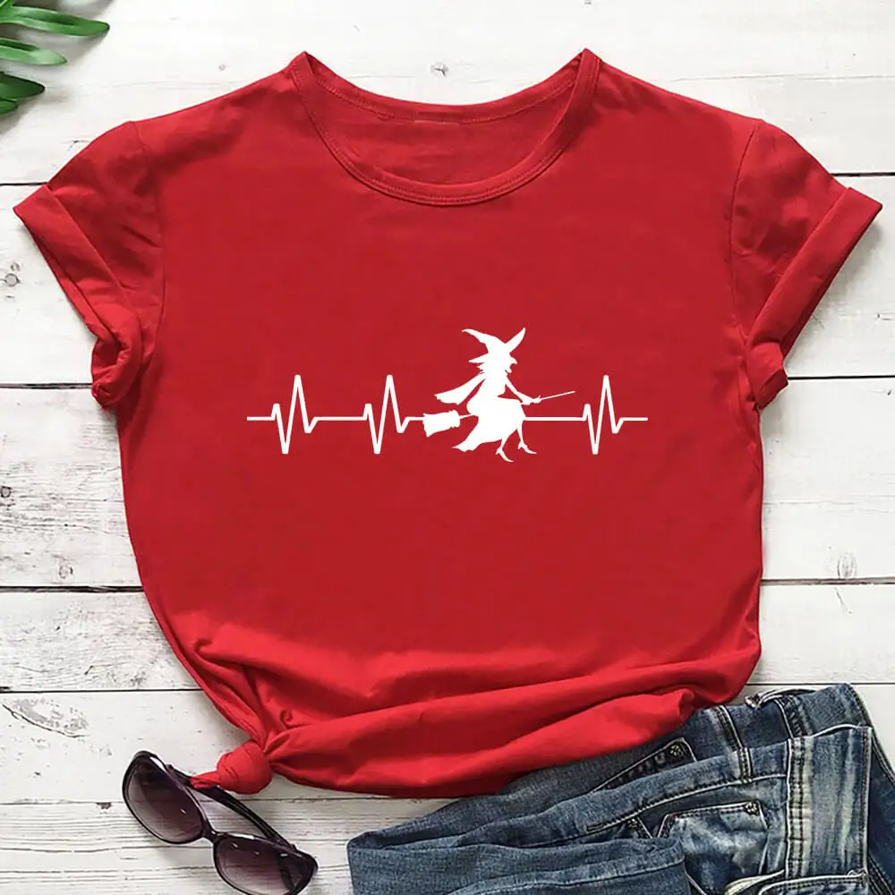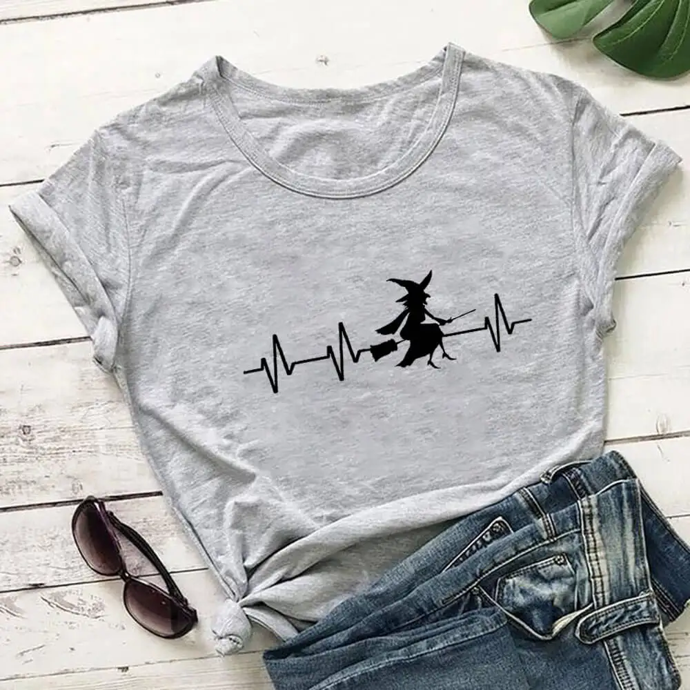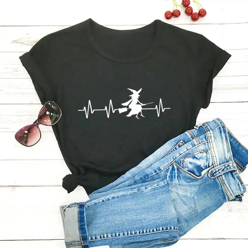 Женская Повседневная футболка Witch Heart Beat Witch на Хэллоуин, 100% хлопок