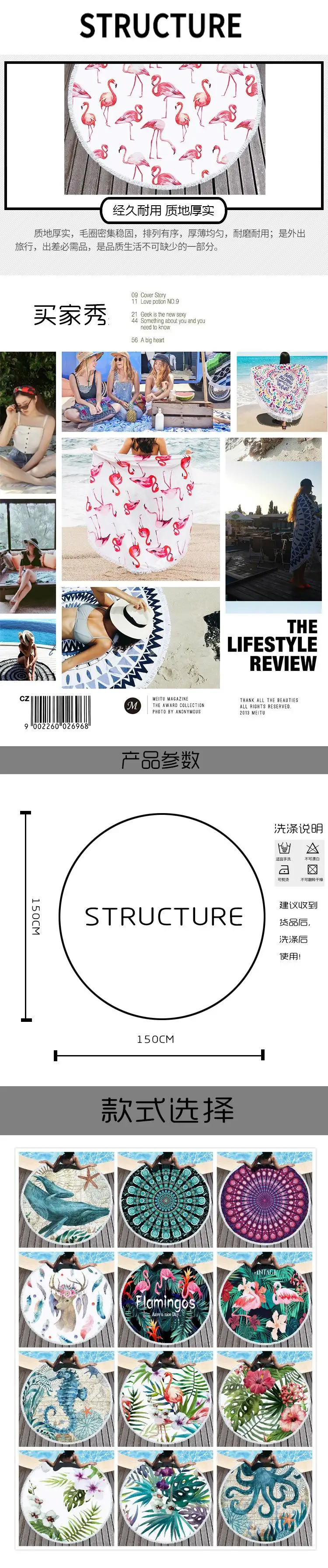 Мандала круглое пляжное полотенце с бахромой в богемном стиле микрофибра банное полотенце для душа для покрывало для взрослых Пикник йога коврик Одеяло Обложка гобелен