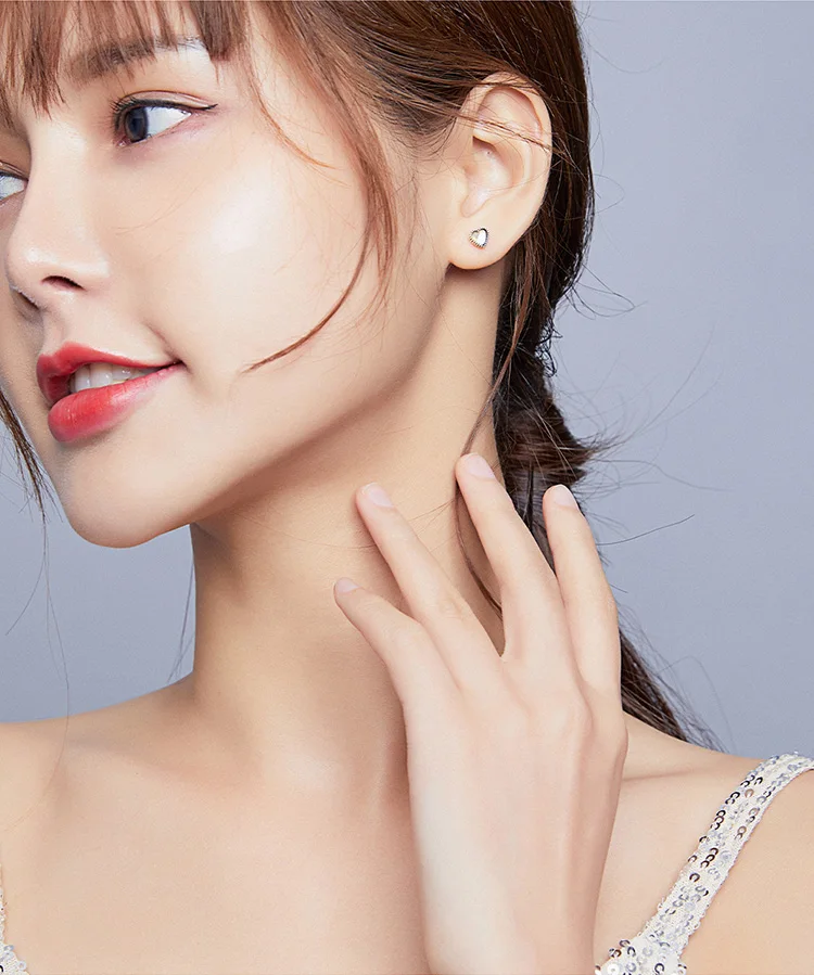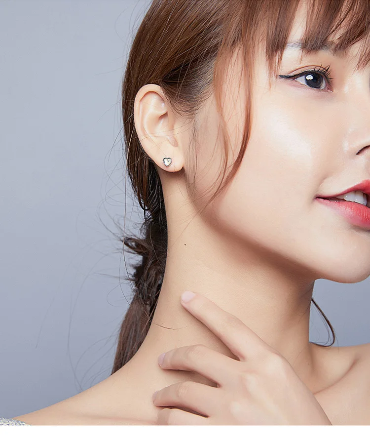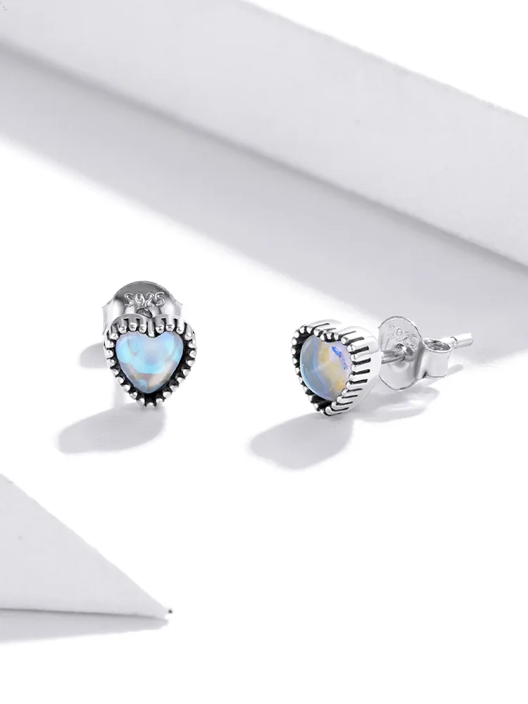 Серьги-гвоздики женские из серебра 925 пробы с сердечком из стекла