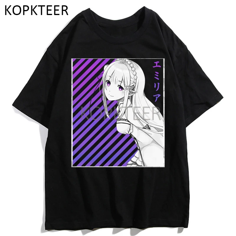 Футболки с аниме рисунком ReZero Kara Hajimeru Isekai Seikatsu Emiria Мужчины Женщины Мужчины смешная графическая футболка с коротким рукавом Harajuku Ullzang Top Tee