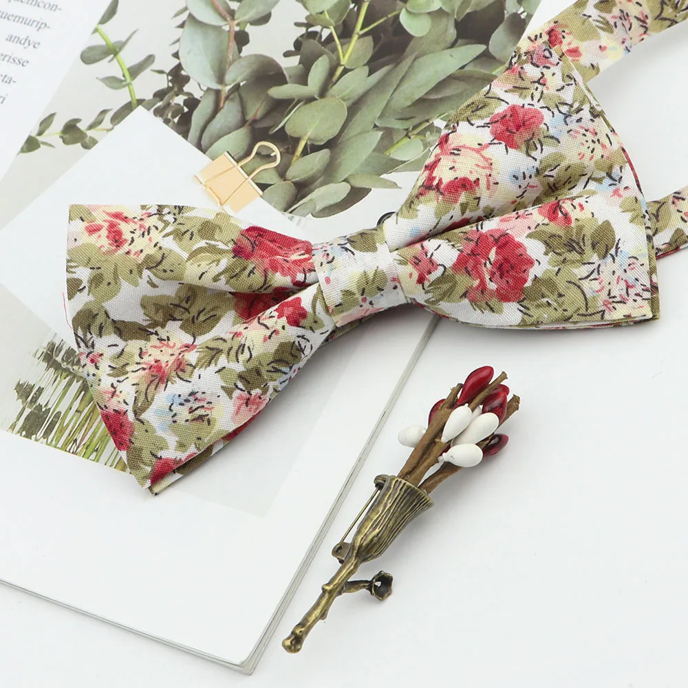 Красивая хлопковая однотонный галстук-бабочка брошь с булавкой-бабочкой и цветочным принтом