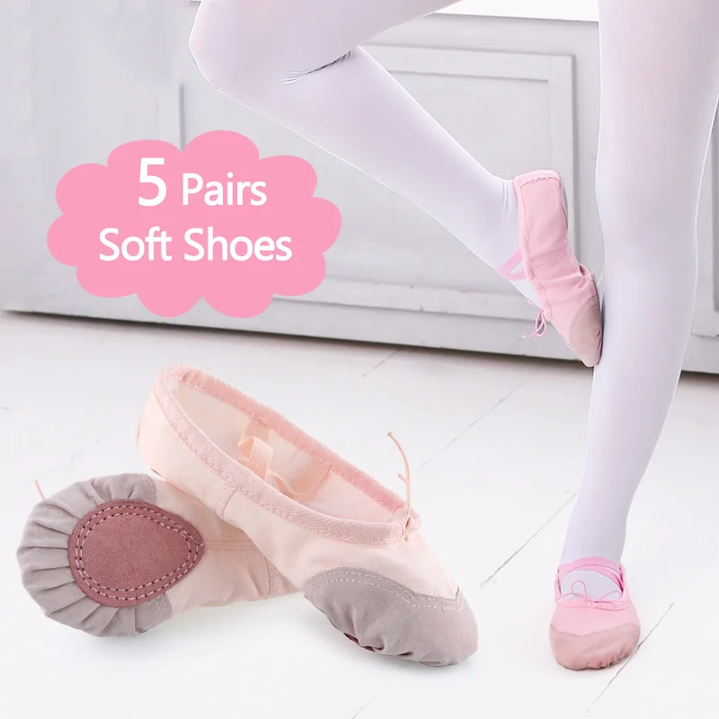 5 пар, балетки для девочек, для гимнастики, балерины на плоской подошве, балетки для танцев