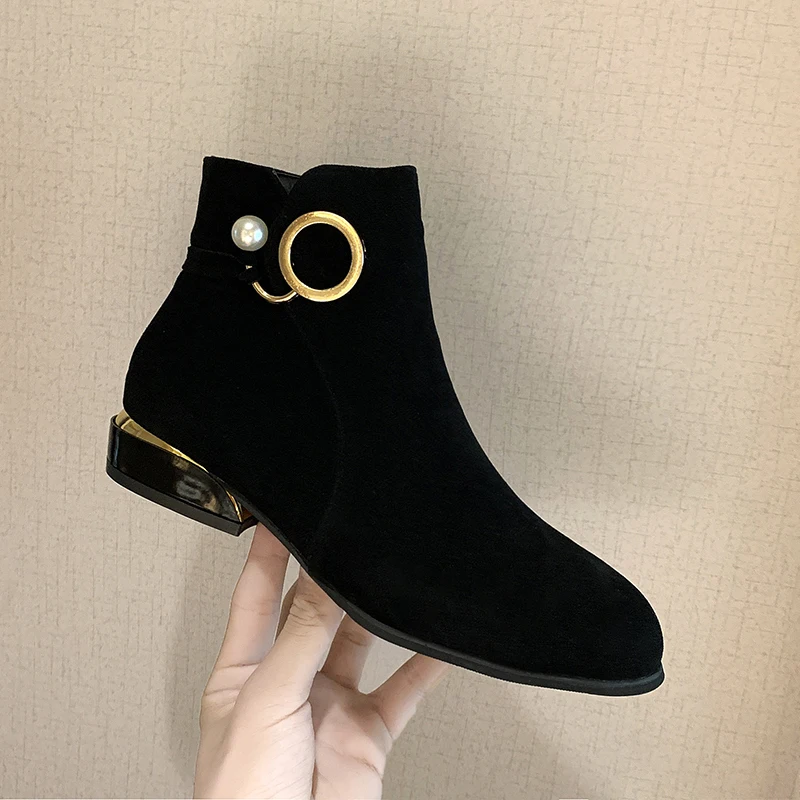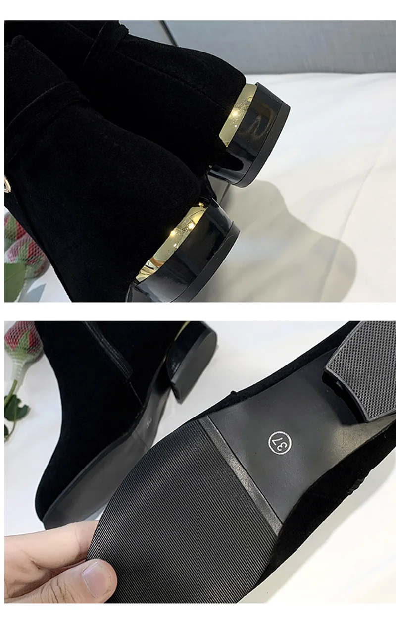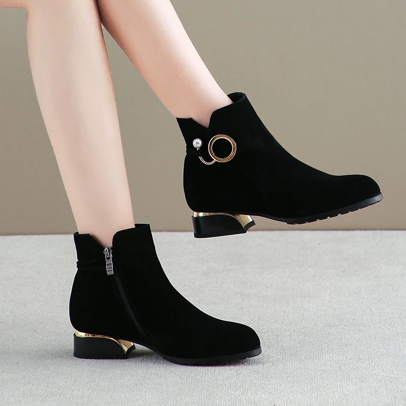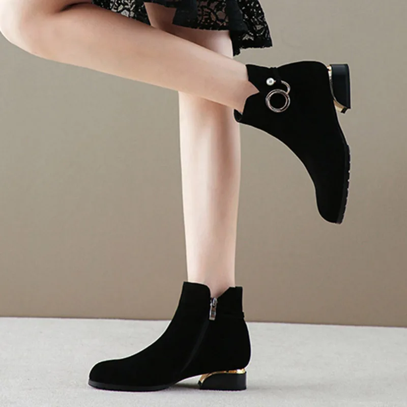 Женские замшевые однослойные ботинки на среднем массивном каблуке, ...