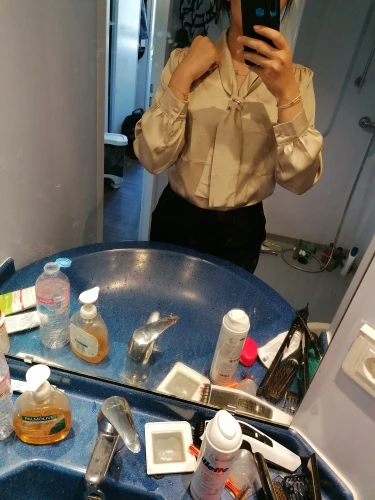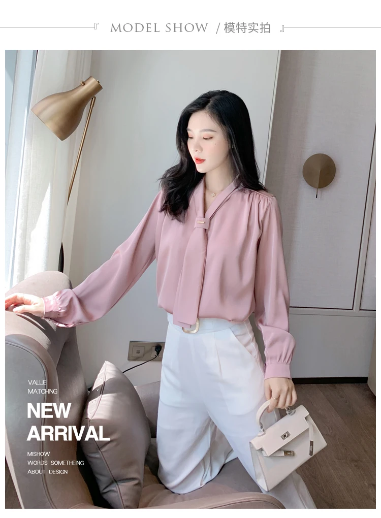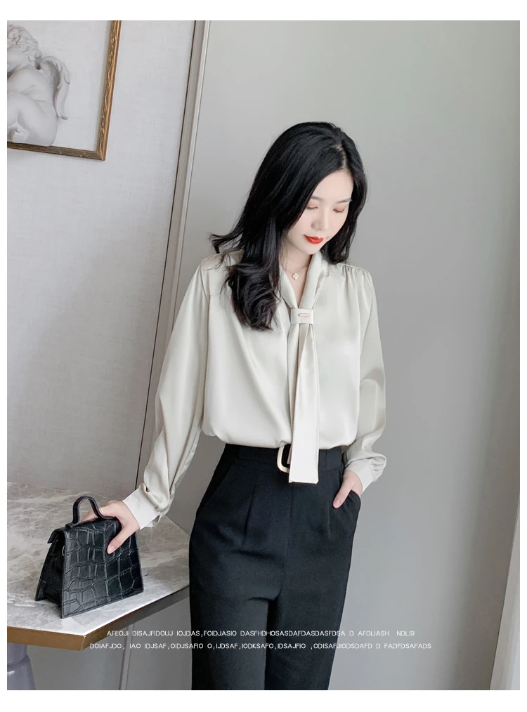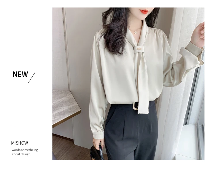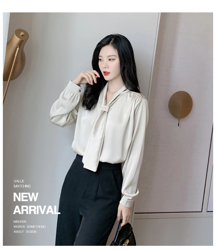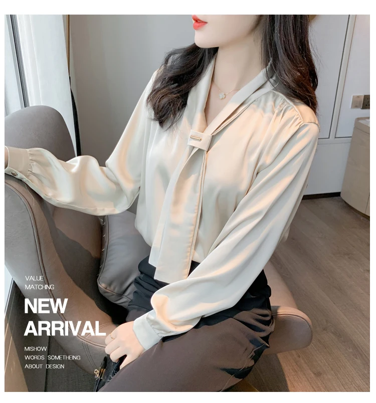 Осенняя шифоновая рубашка в офисном стиле, женская рубашка с длинным рукавом, Женская атласная рубашка, свободные женские топы и блузки с V-образным вырезом, одежда 10842