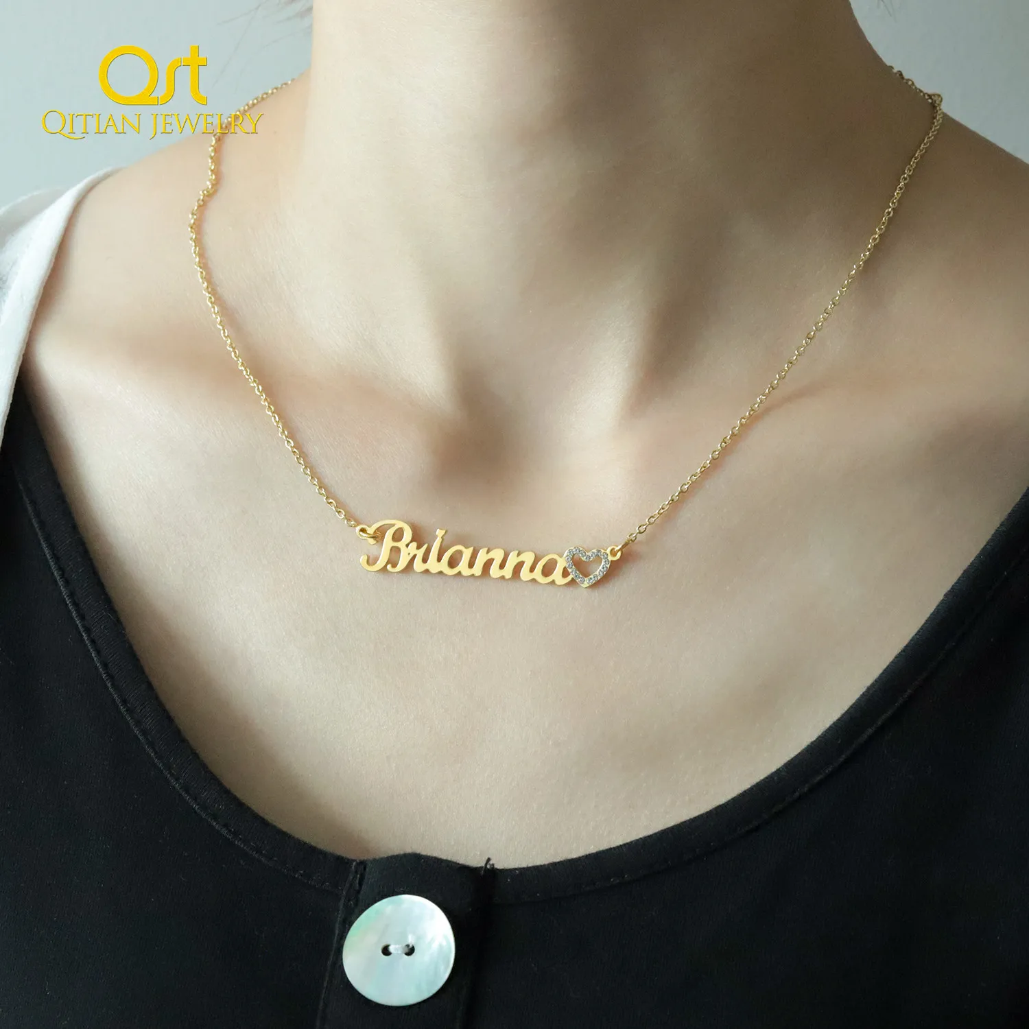 Индивидуальное ожерелье Qitian в форме сердца с именем, ожерелье с ...