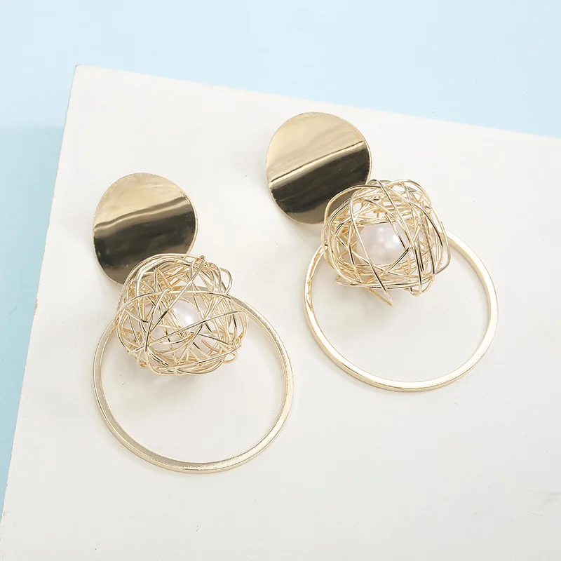 Женские серьги-подвески, круглые, золотистые, геометрической формы, ювелирные украшения для свадьбы, 2020