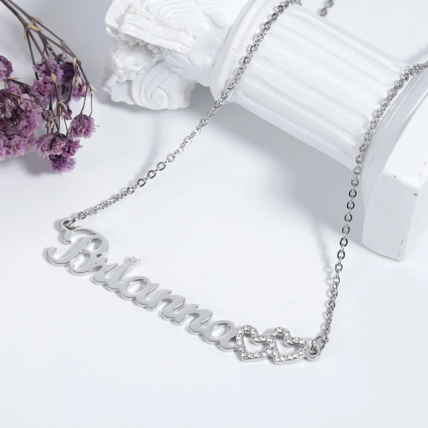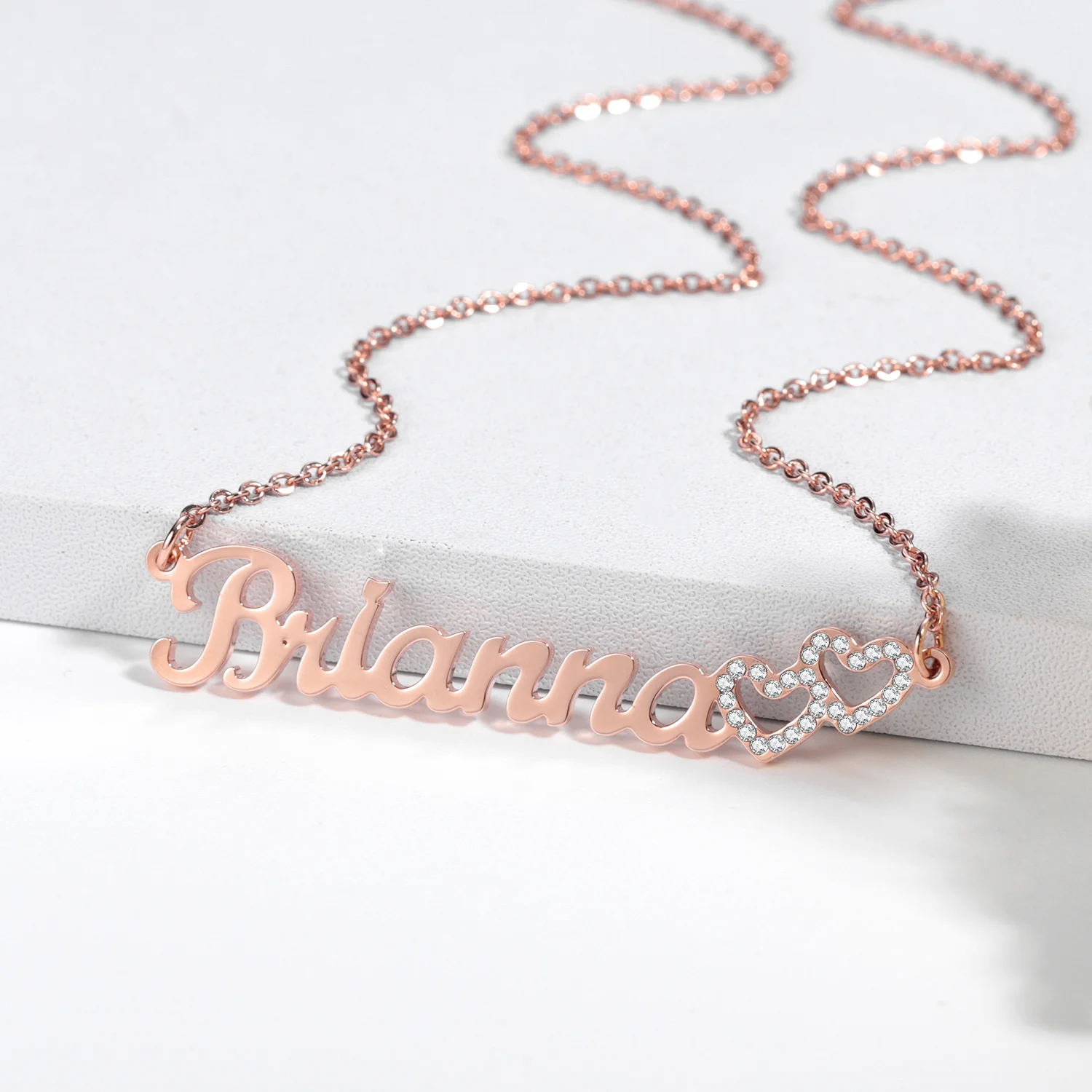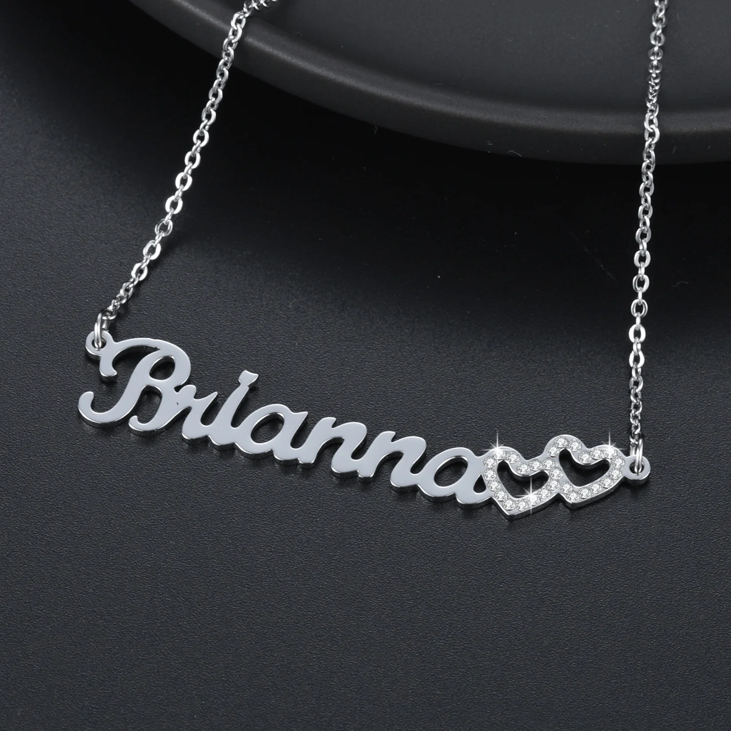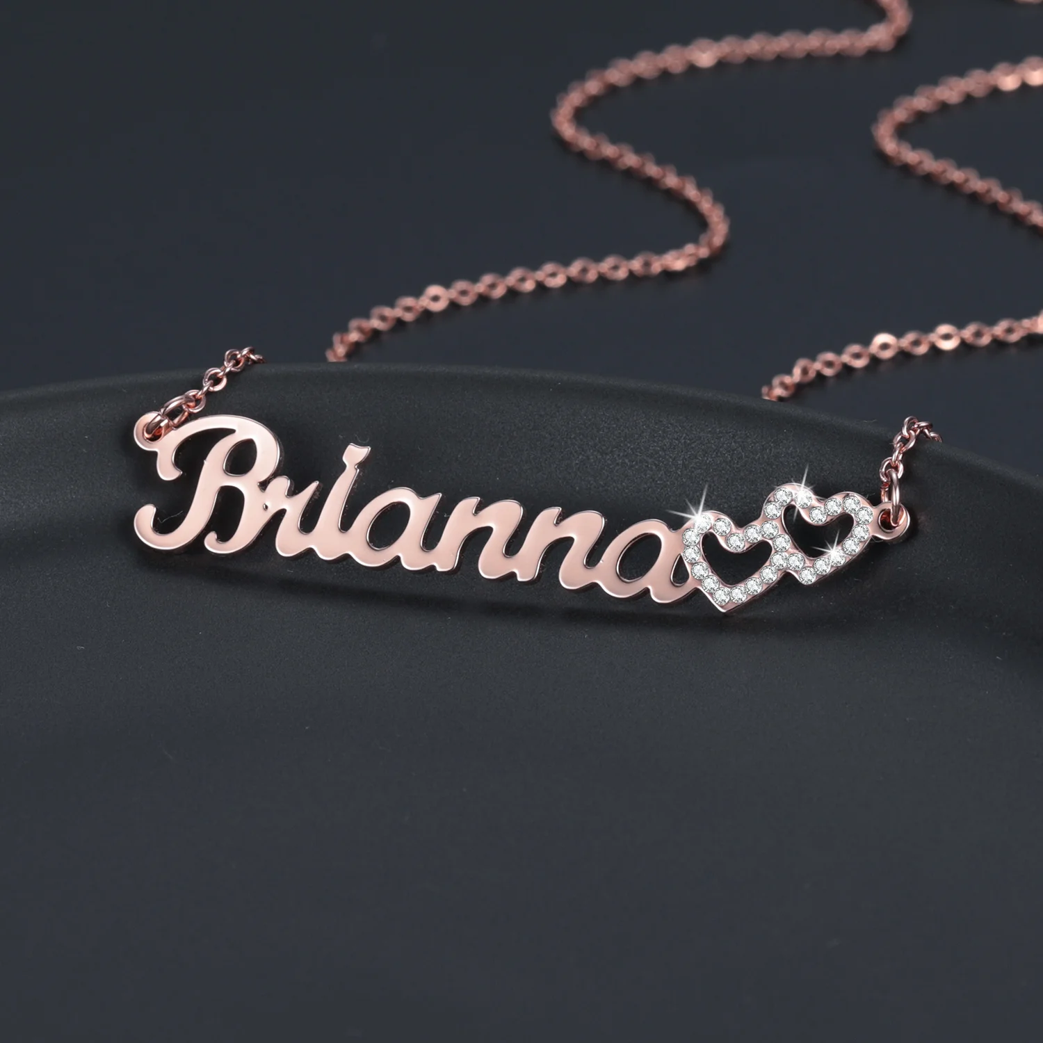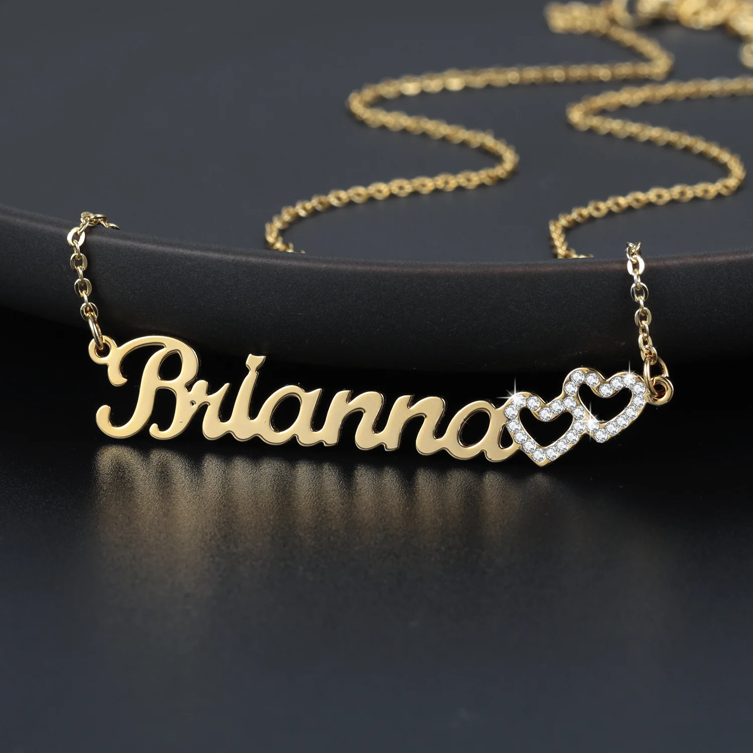 Персонализированное ожерелье с двойным полым именем, Очаровательная табличка из нержавеющей стали на заказ, ожерелье, ювелирные изделия, чокер, подарки для женщин