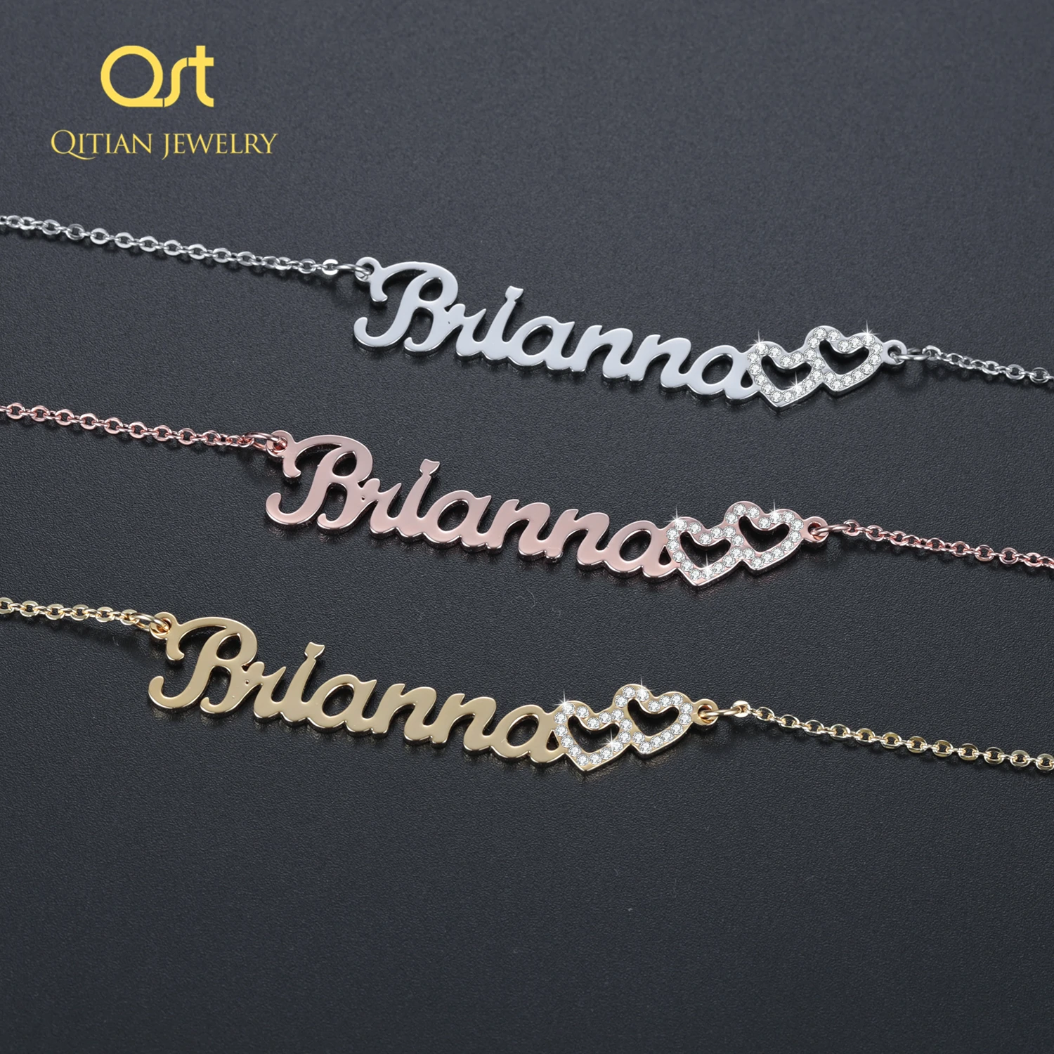 Индивидуальное ожерелье Qitian в форме сердца с именем, ожерелье с ...