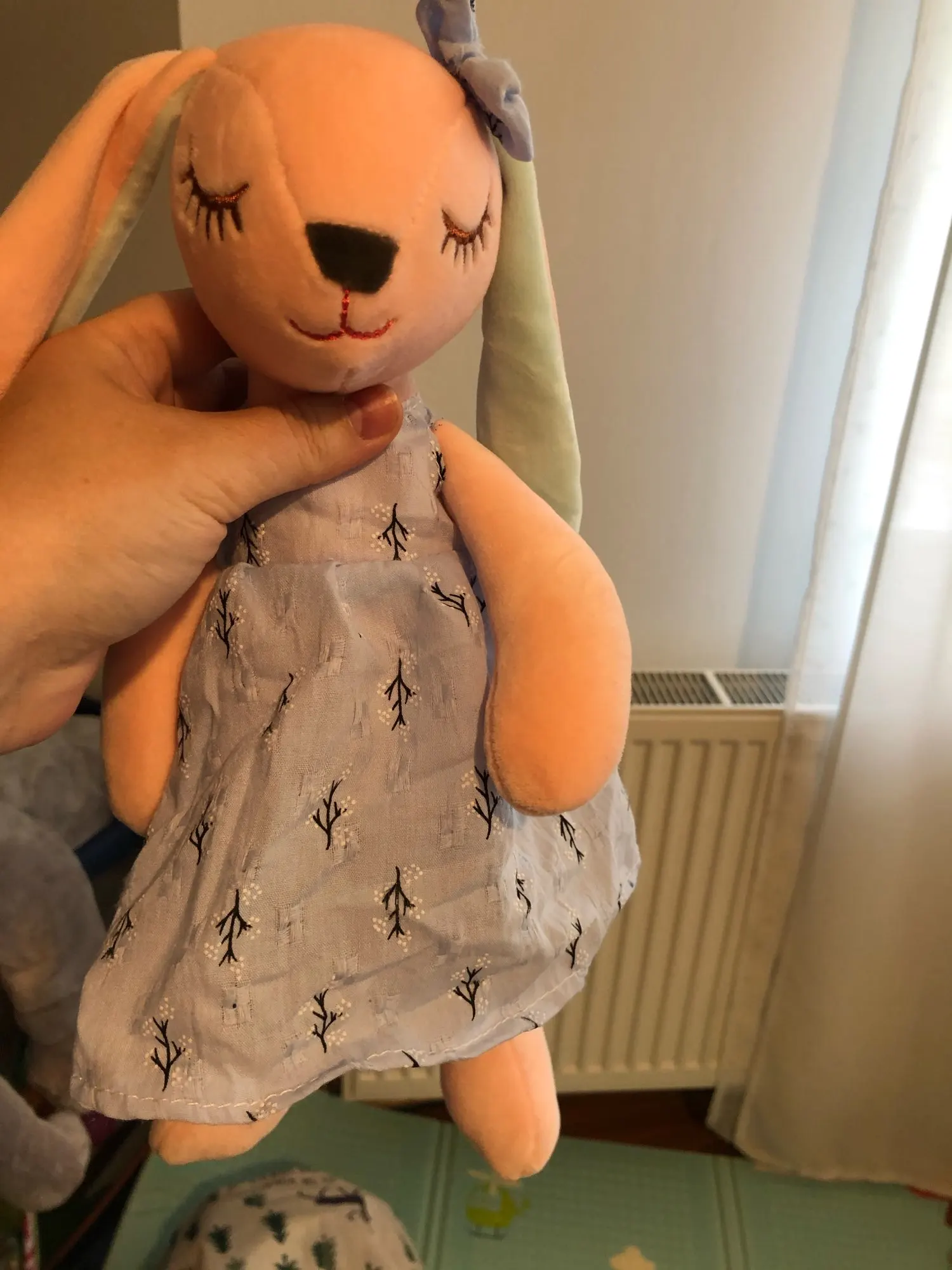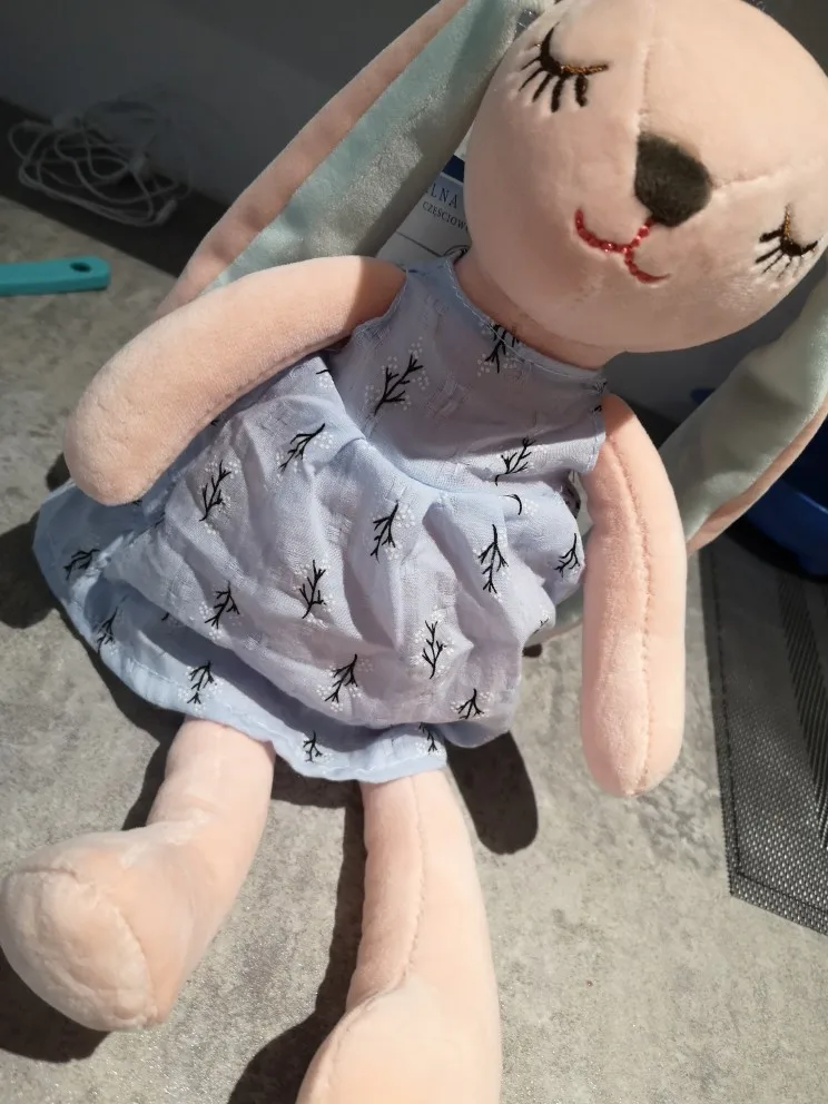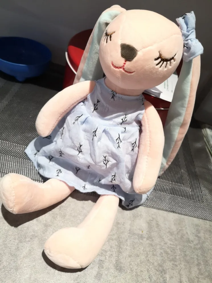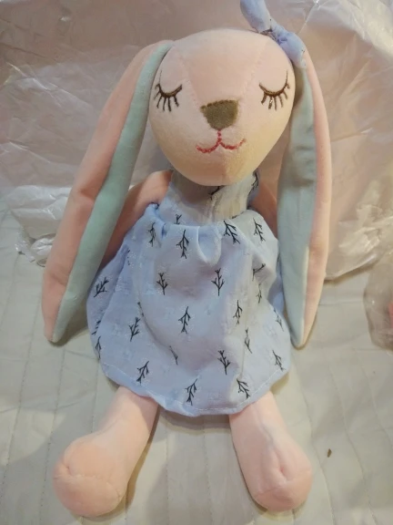 Зайчик как на фото, красивое платьишко, длинные ушки, аккуратно сшит, запаха нет.
