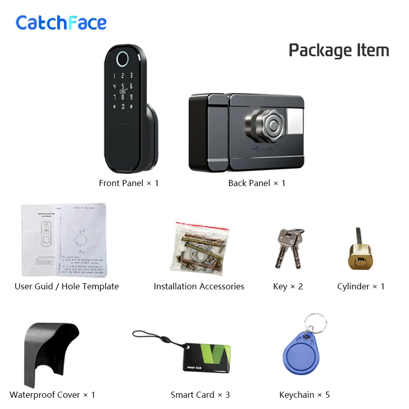Способ разблокировки: приложение, отпечаток пальца, карта, код и ключЕмкость отпечатков пальцев: 200 шт.Емкость пароля: без ограниченийЕмкость смарт-карты: 200 штРазмер батареи: 4 шт. AAA 1,5 V или DC 12V входПоддержка кода схваткиРабочая температура: от-20 до 60 градусов ЦельсияТип отпечатков пальцев: полупроводниковый встроенный отпечаток пальцаТип кнопки: емкостная сенсорная кнопкаНазвание приложения: Tuya App