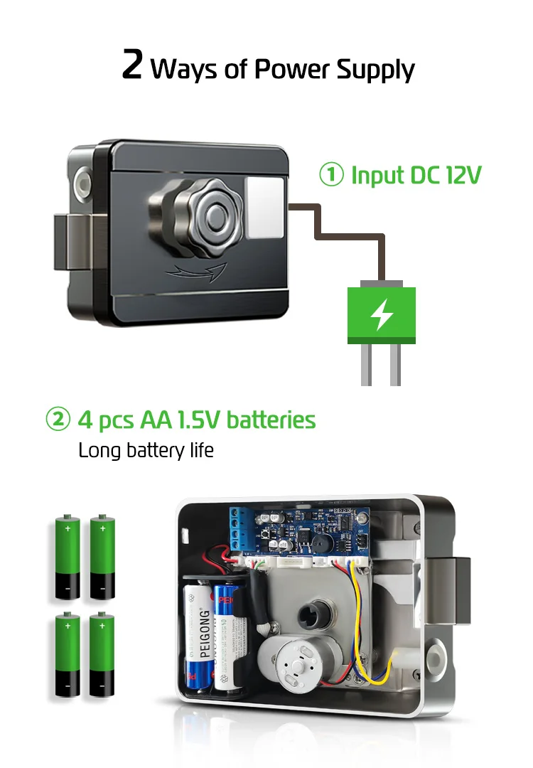 1. Используйте 4 батарейки AA 1,5 V2. Вход DC 12V(Батарея и Поддержка питания не включены)