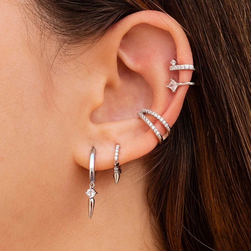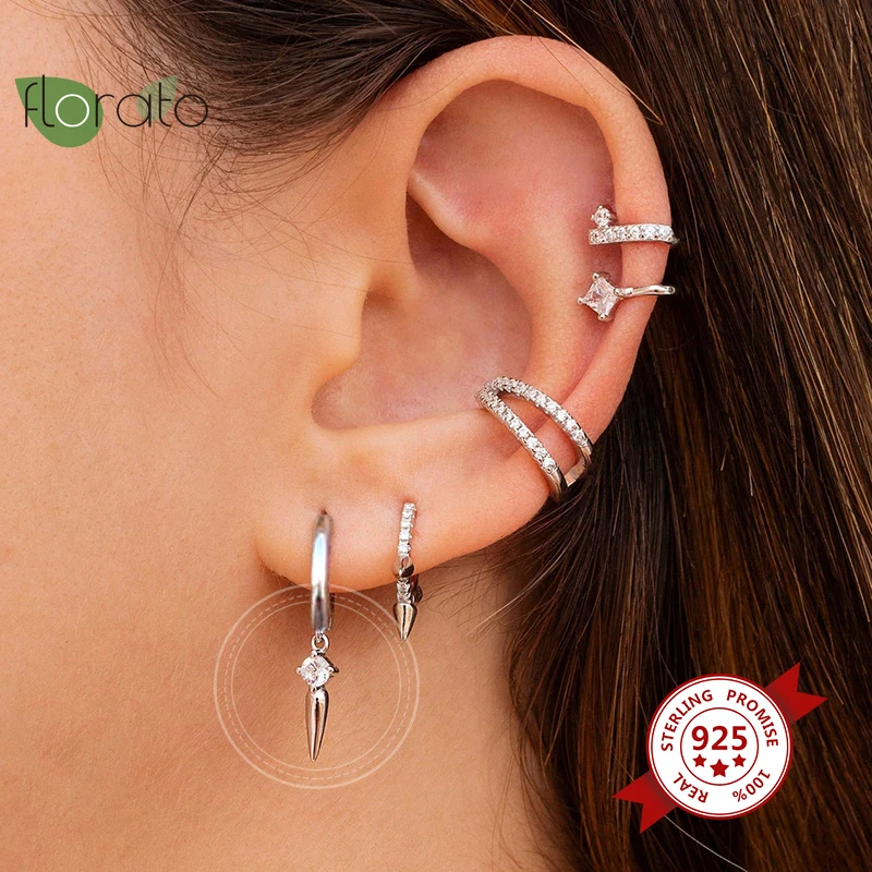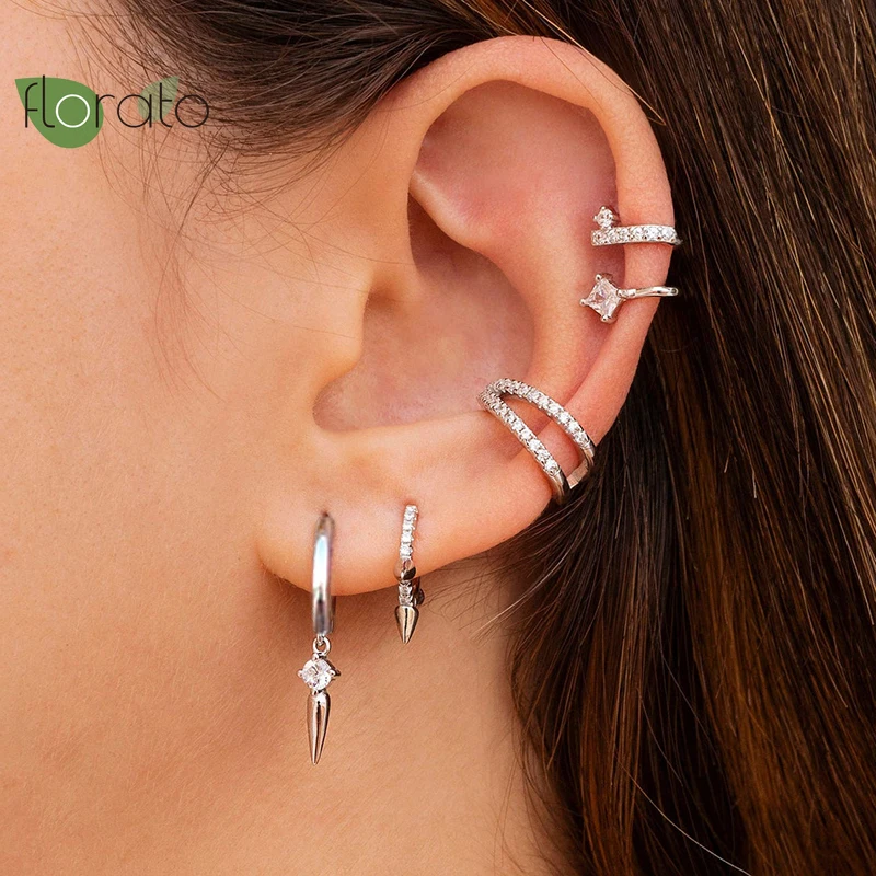 Серьги-кольца женские из серебра 925 пробы с геометрической застежкой