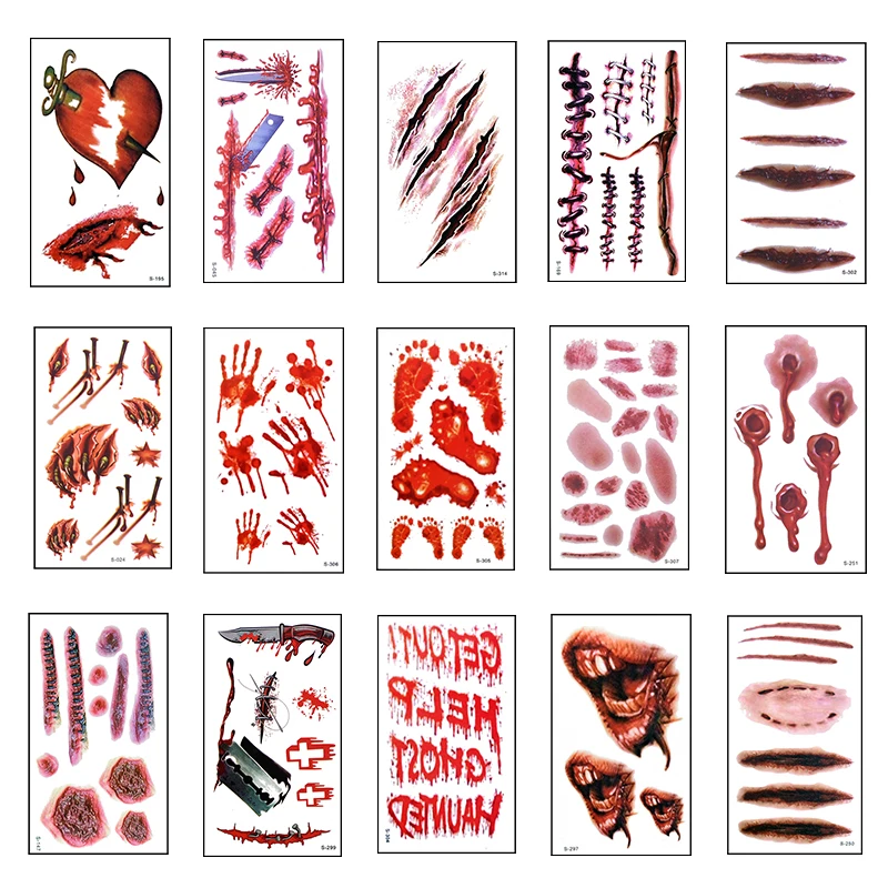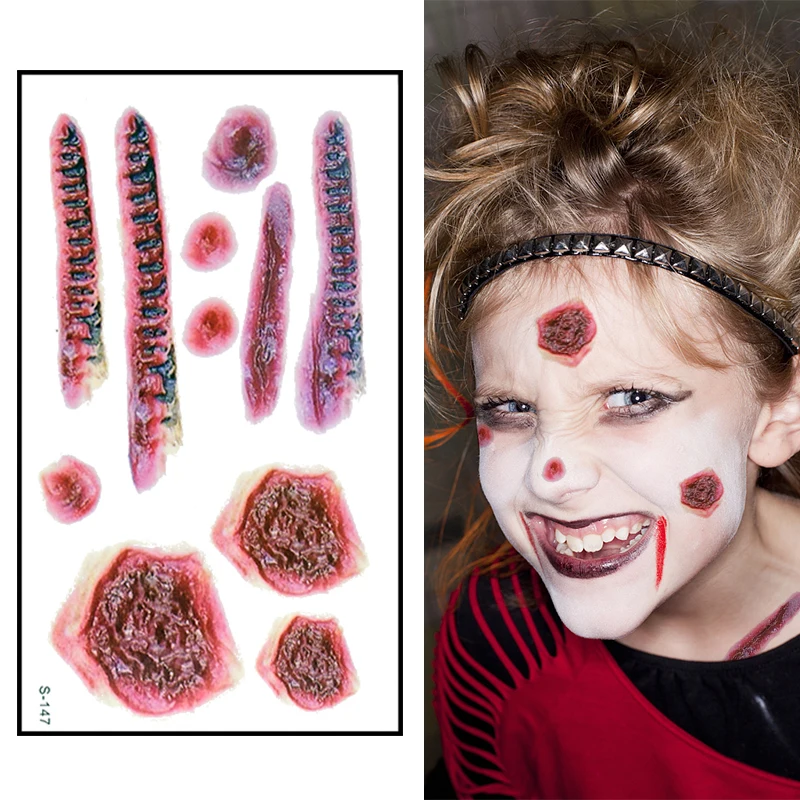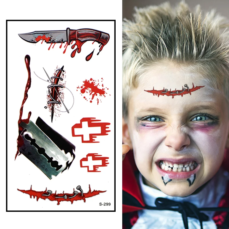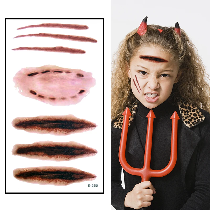 6pcs Halloween Bloody Wound Tattoo Stickers Trick Scary Waterproof Temporary Tattoo DIY Fake Tattoo Halloween Party Decoration