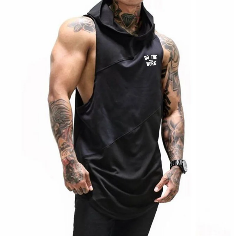 Майка мужская без рукавов, эластичная, с капюшоном, в стиле хип-хоп
