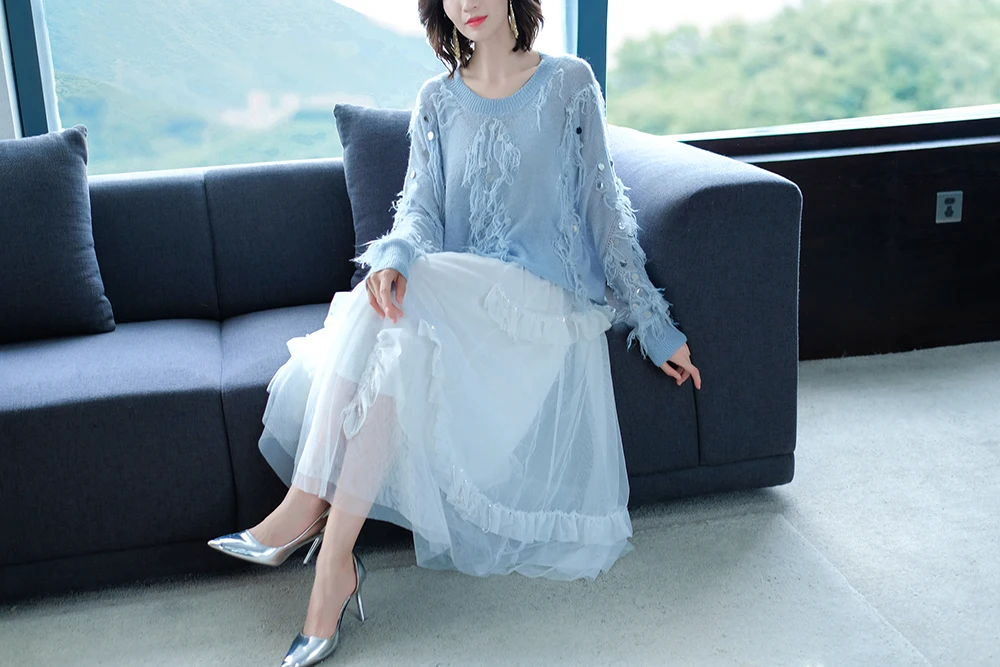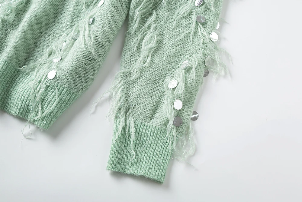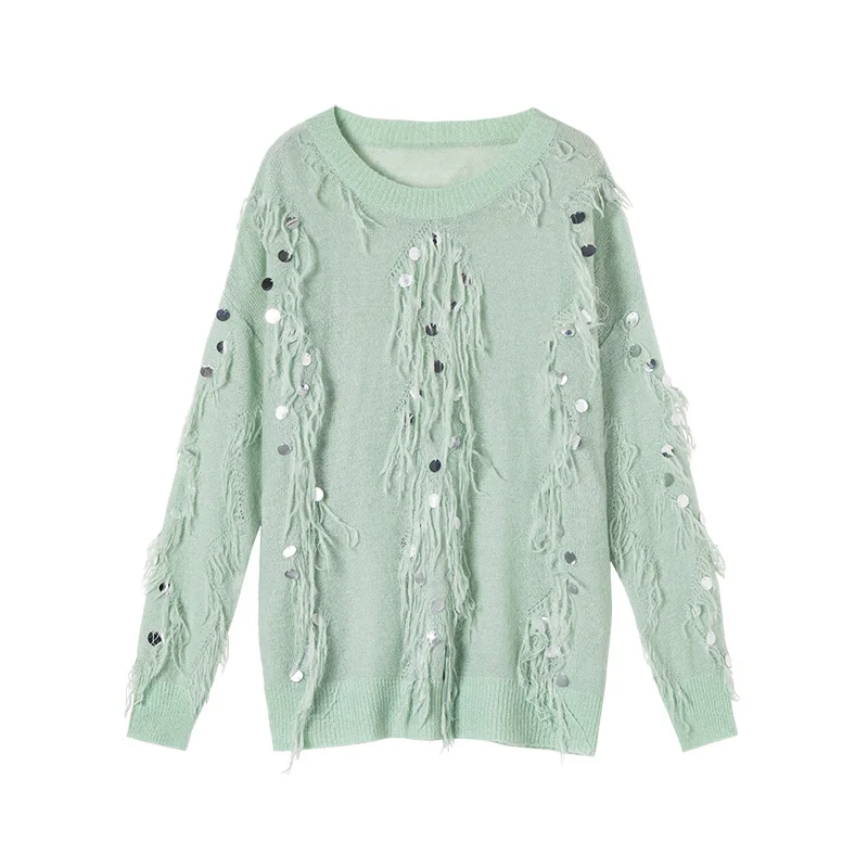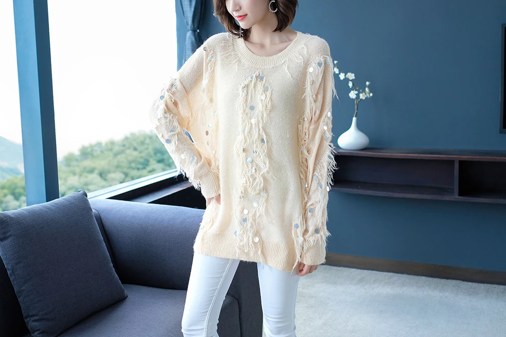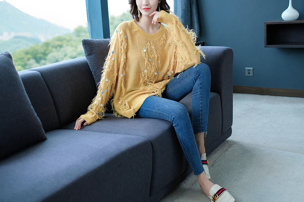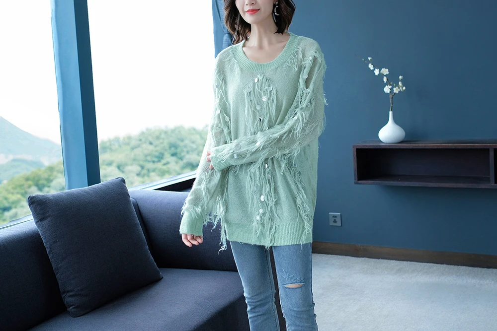 Женский мохеровый свитер YISU, Свободный вязаный пуловер с кисточками и блестками, Осень-зима