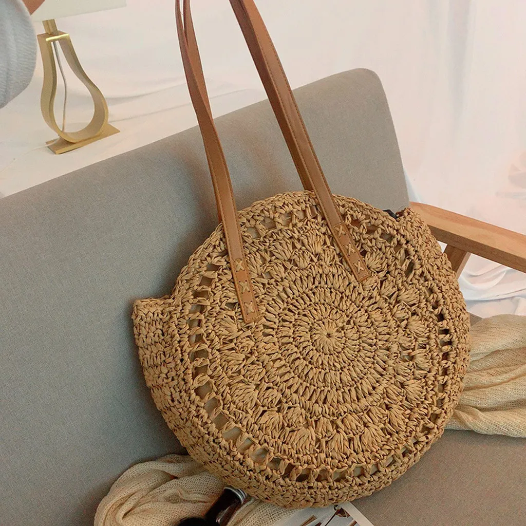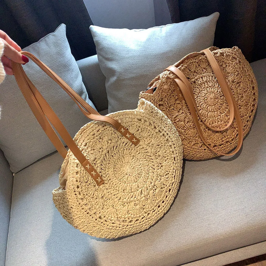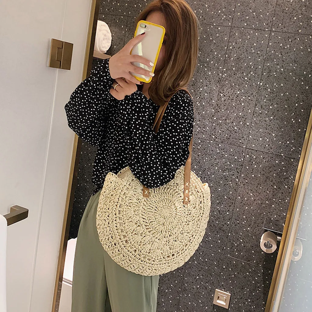 Летние пляжные сумки, винтажные, ручной работы, круглые сумки через плечо из ротанга, Плетеная соломенная сумка г., сумка-мессенджер в стиле бохо, сумка через плечо