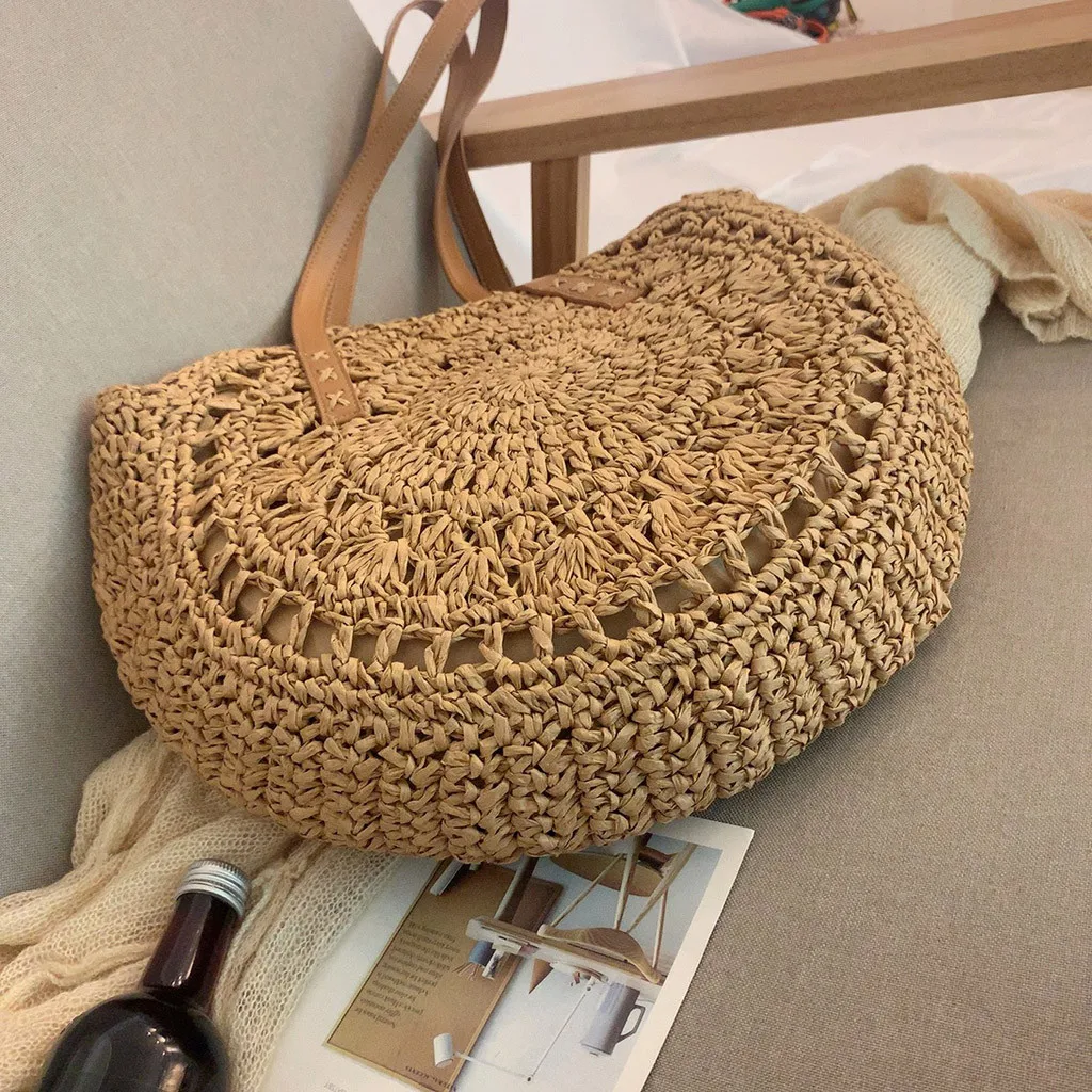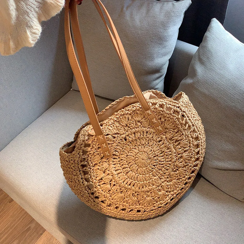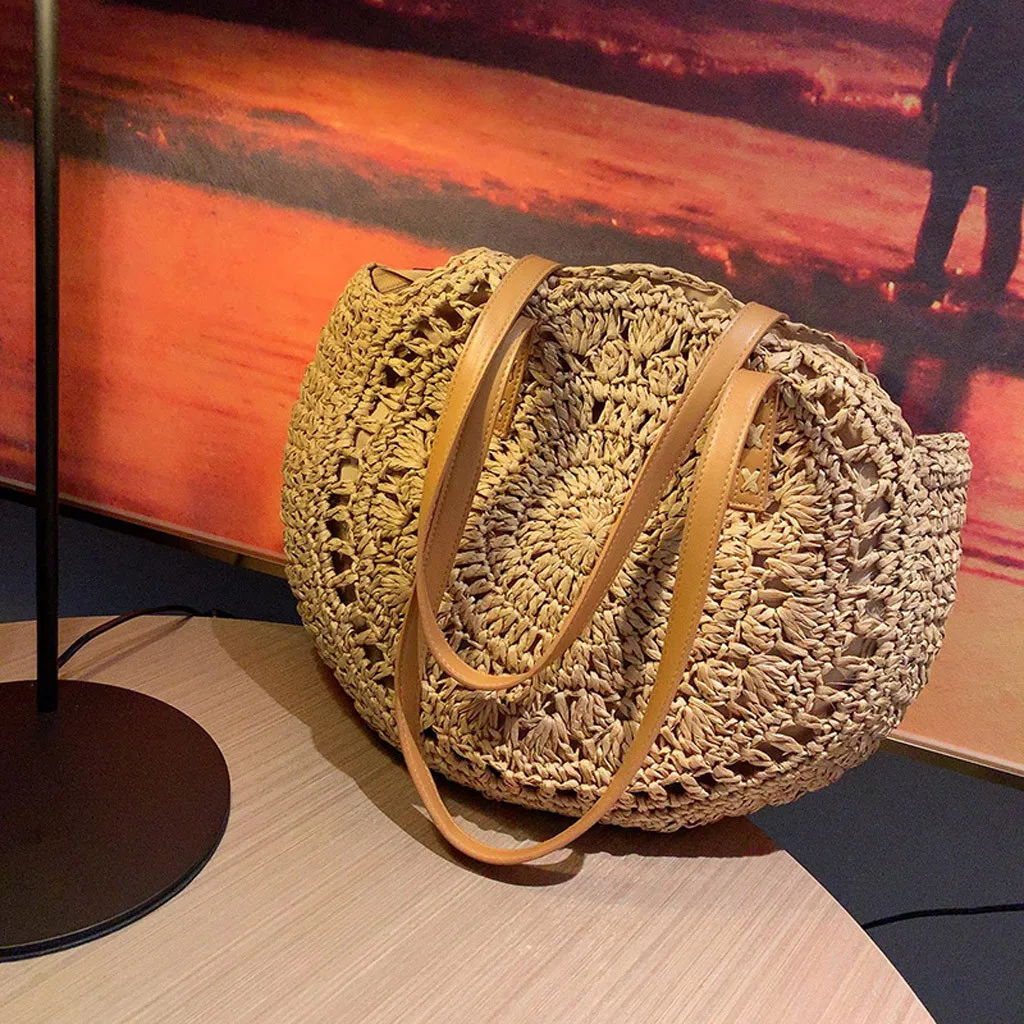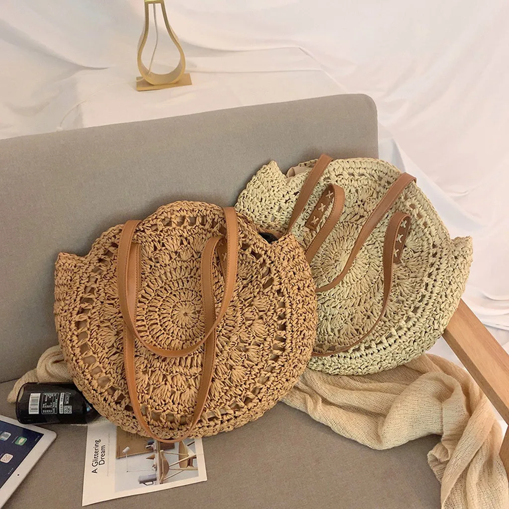 Летние пляжные сумки, винтажные, ручной работы, круглые сумки через плечо из ротанга, Плетеная соломенная сумка г., сумка-мессенджер в стиле бохо, сумка через плечо