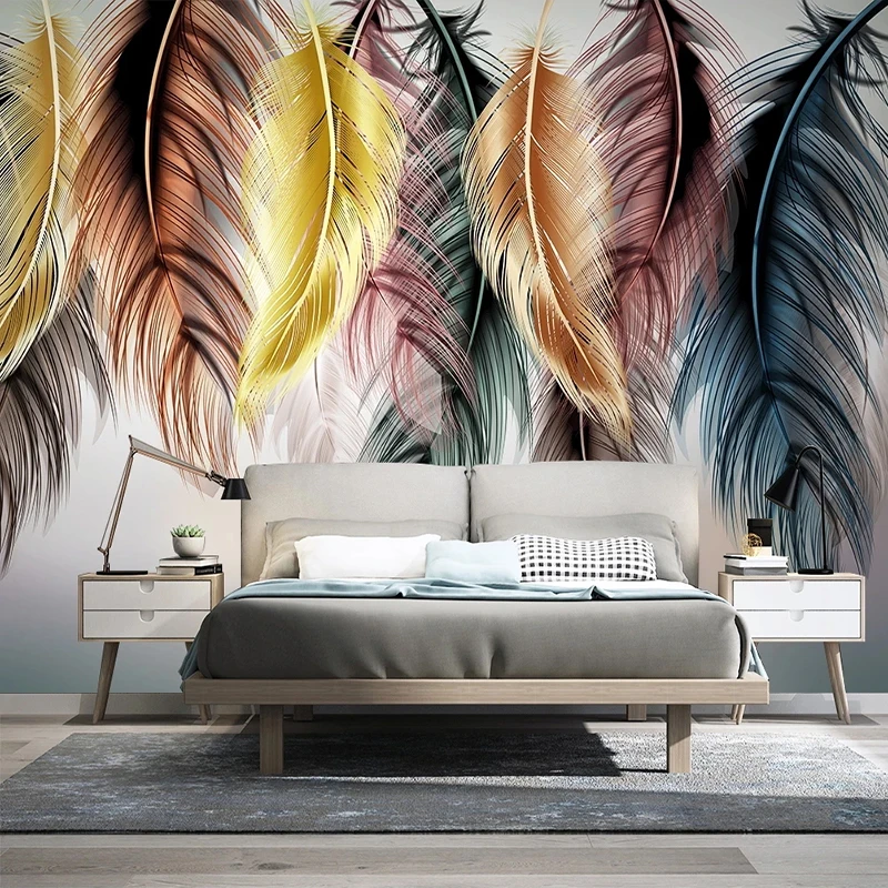 Пользовательские фотообои 3D Ручная роспись красочные перья роскошный настенный декор живопись гостиная спальня фон обои