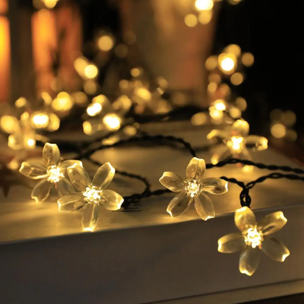 30 светодиодный Сказочный светильник, гирлянда вишневого цвета, на батарейках, светодиодный струнный светильник, хрустальные цветы, украшение для дома, свадьбы, Рождества, сада
