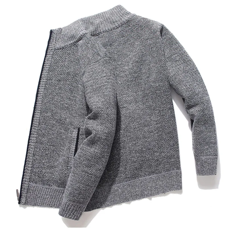 2020 зимний мужской однотонный кардиган, повседневный вязаный свитер на молнии для мужчин, толстый мужской кардиган с воротником-стойкой