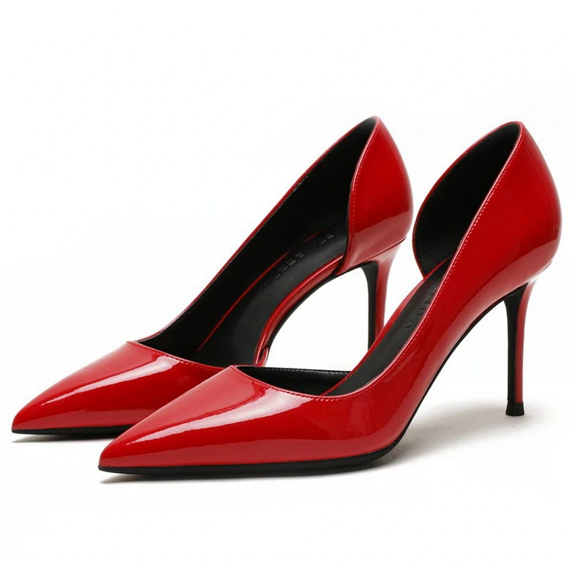 2020 лакированная кожаДетские замшевые свадебные туфли на высоком тонком каблуке с острым носком пикантные вечерние офисные туфли-лодочки N0047