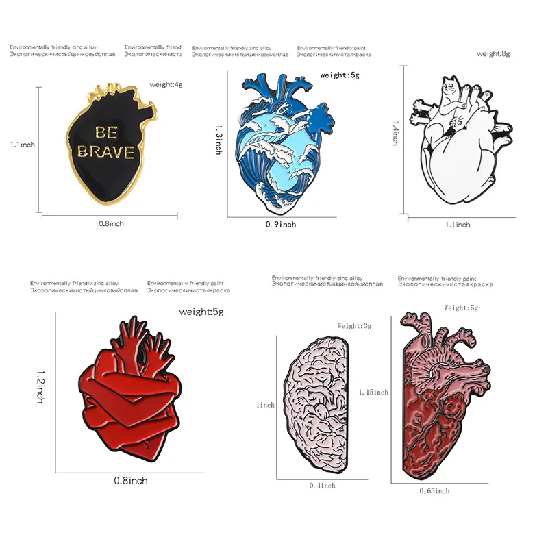 Океанская анатомическая эмалированная брошь в форме сердца, человеч...