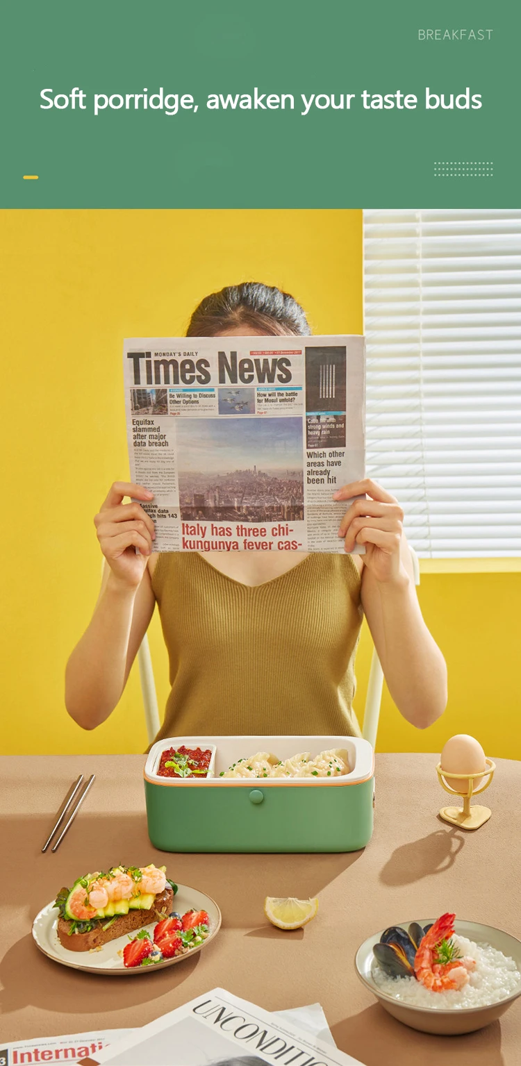 Электрический Ланчбокс 300 Вт, умная рисоварка, мультиварка, без воды, нагрев, кастрюля, керамический вкладыш, цифровой дисплей, 1 л