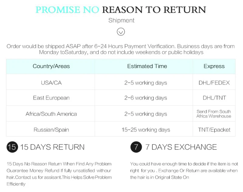 Волосы прибыли в Южную Африку в течение 2 недель. Продавец общался на протяжении всего. Я заказал 12 ”, но продавца не было в наличии и заменил его на 14” без дополнительной платы. В целом я доволен своим заказом.