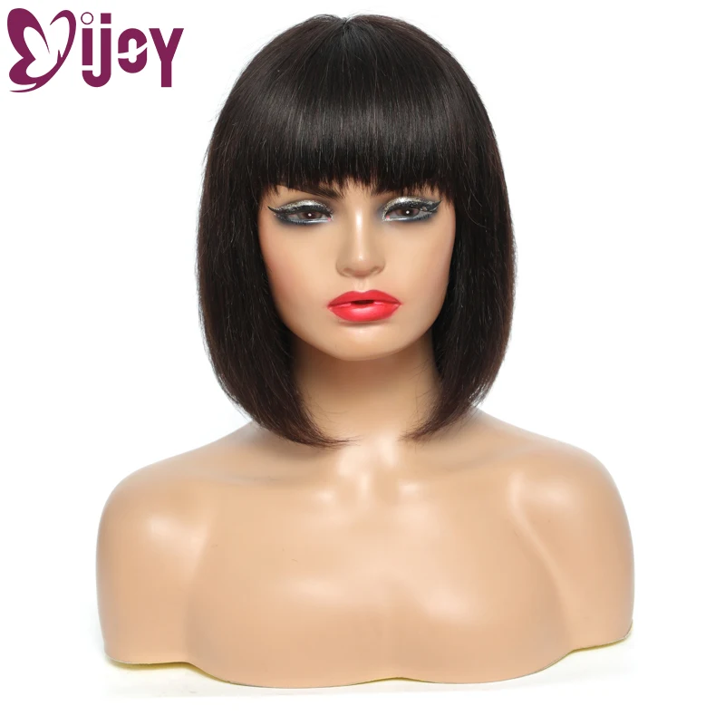 Короткий парик, 100% человеческие волосы, парики с челкой, парик для женщин, бразильский, не Реми, Боб, парик из человеческих волос IJOY