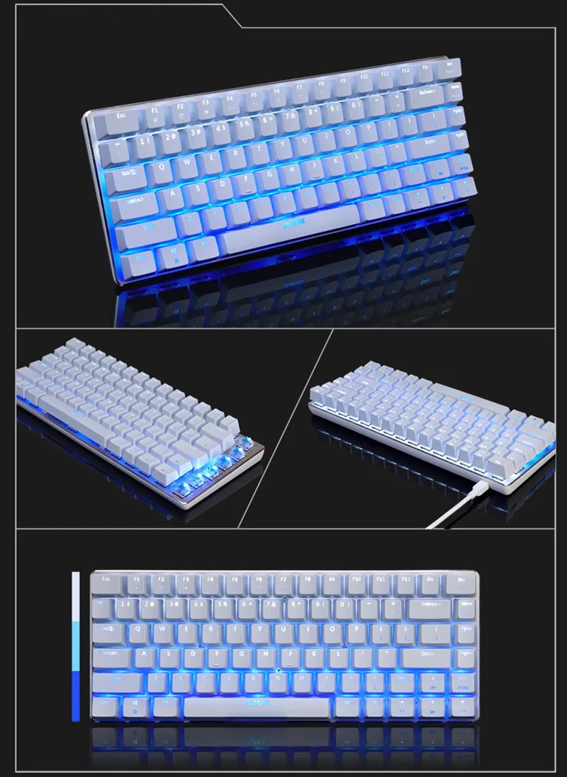 Тип клавиатуры: Механическая игровая клавиатураДлина провода: 1,6 мПодключение: подключи и работай через USBОсь клавиатуры: синяя/черная осьНомер ключа: 82 ключаСрок службы ключа: 5 миллионов разМатериал панели: алюминиевый сплавРазмер: 31,1 см * 12,0 см * 3,7 смВес: 800 гПоддержка системы: WinXP/Vista/7/8/10/Android/Linux/Apple System s
