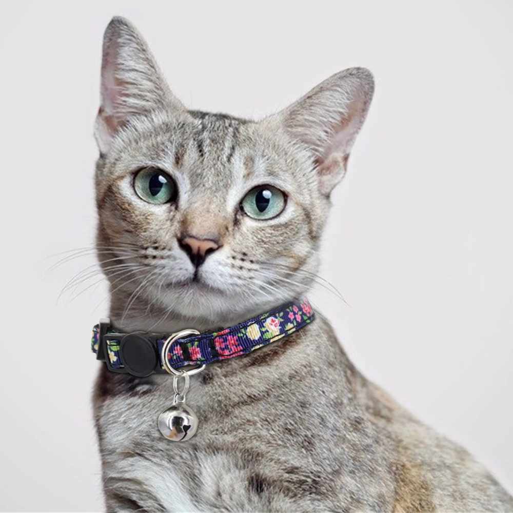Ошейник для кошек, с выгравированным колокольчиком, с милым принтом