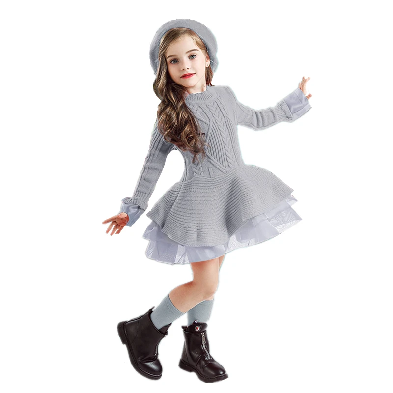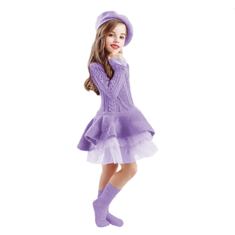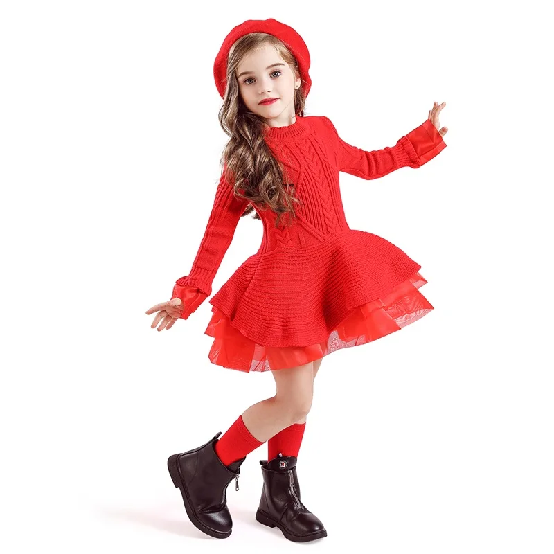 Вязаное платье для девочек Новогодняя осенне-зимняя одежда детское платье с оленем для девочек, костюм принцессы теплые рождественские платья на возраст от 3 до 8 лет